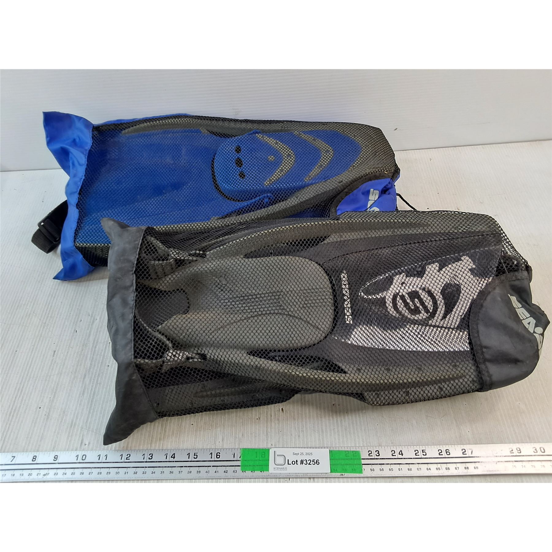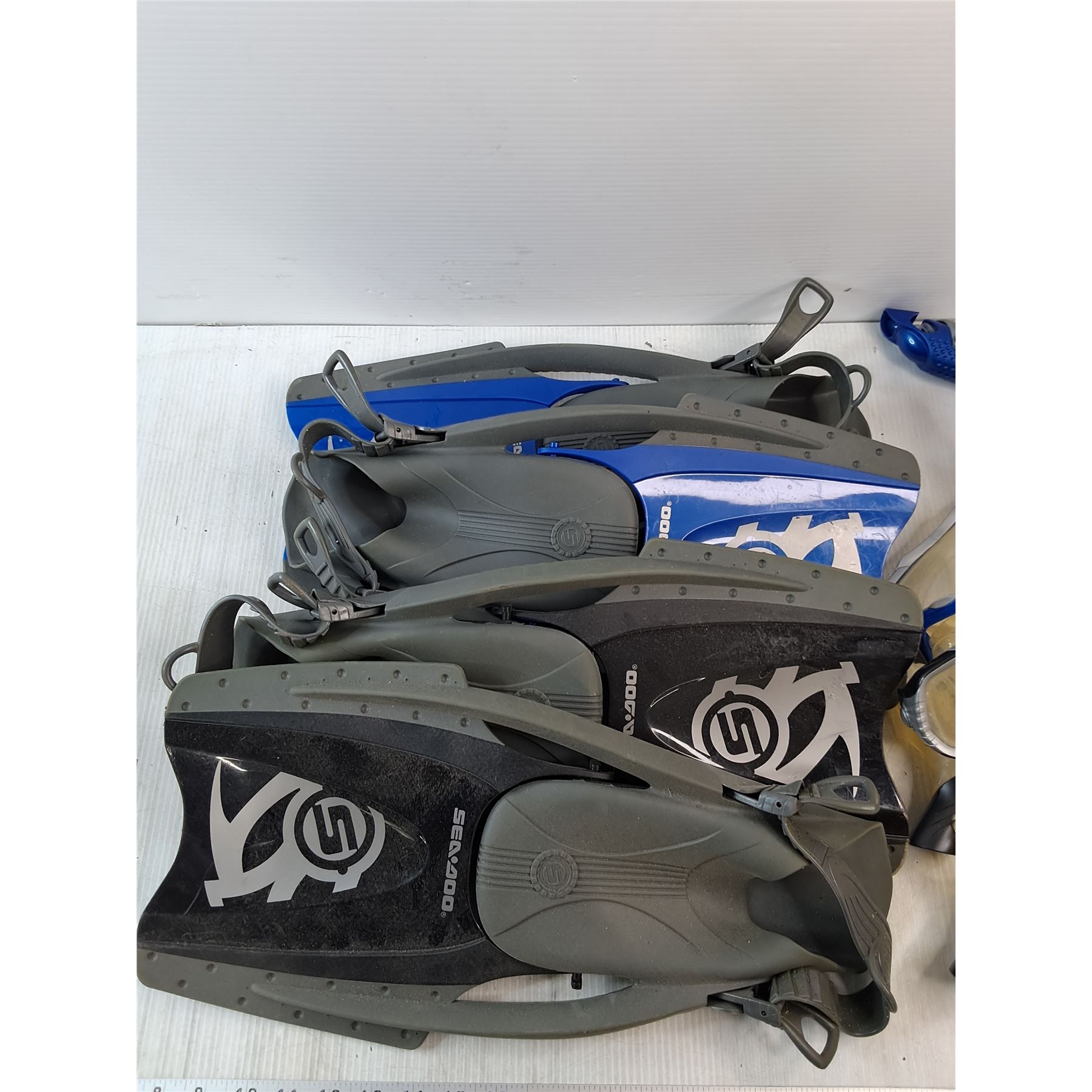 (2) Pairs of Swim Fins, Diving Goggles, Breathing Tubes