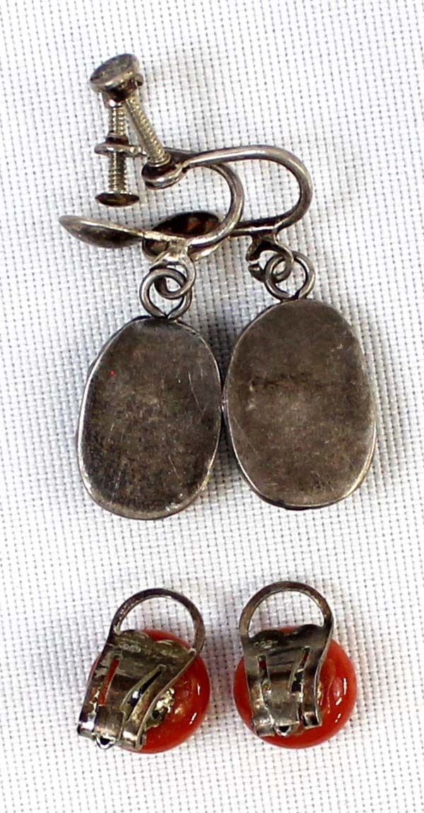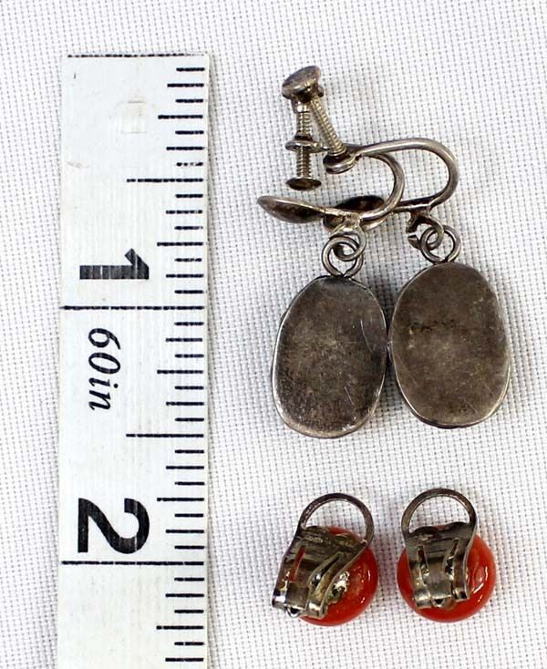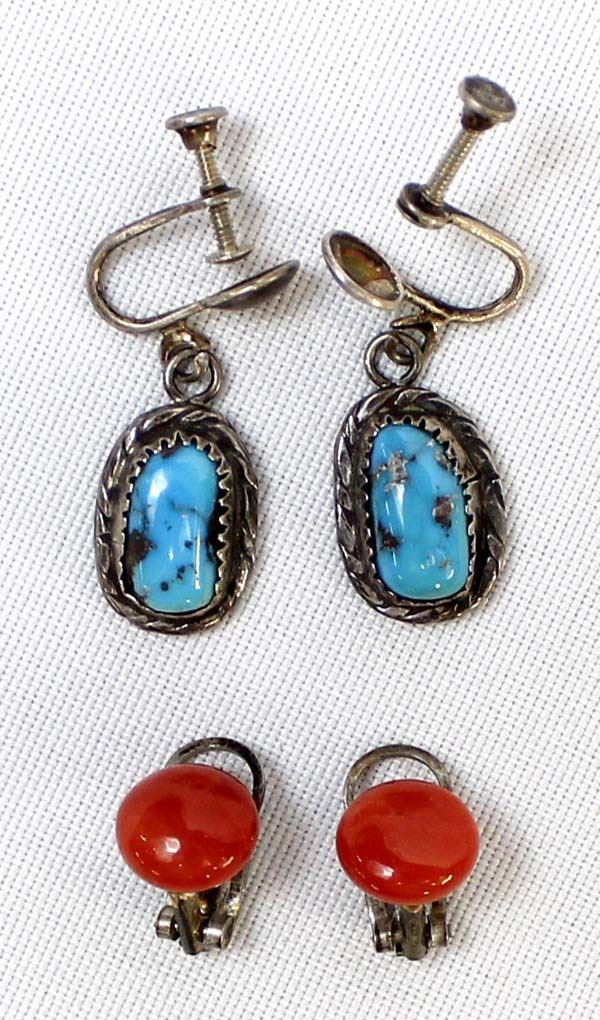 2 Pairs of Vintage Native American Navajo Screwback Earrings, longest measures 1 1/8''L which includes the screwback, includes turquoise and coral