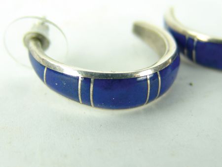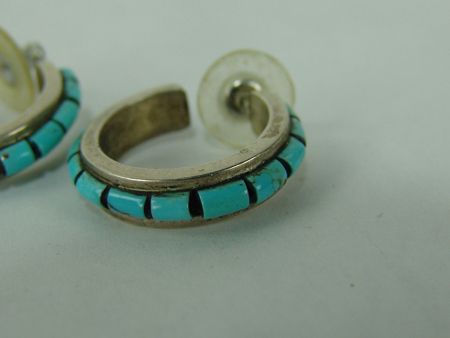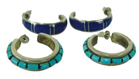 Various, A fine vintage pair of raised turquoise inlay earrings from the 1970s, plus a 1980s pair inlaid with lapis, both made of silver. Very good condition. 1"