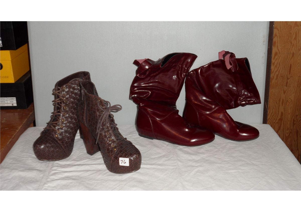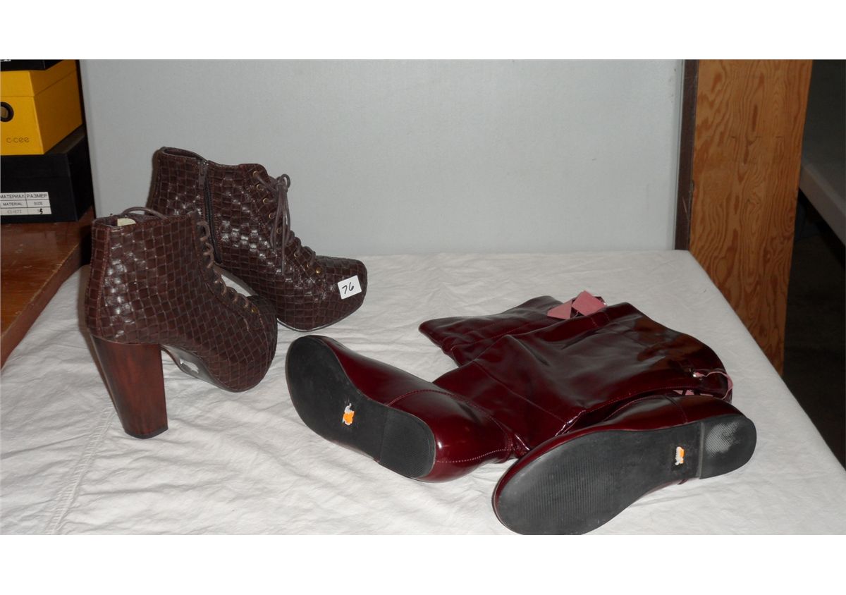 Lace Up Shoe 4" heel Brown Size 6 / Knee High Boot flat Red Size 6