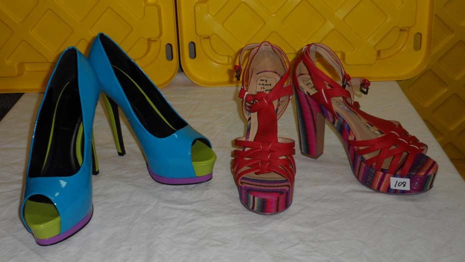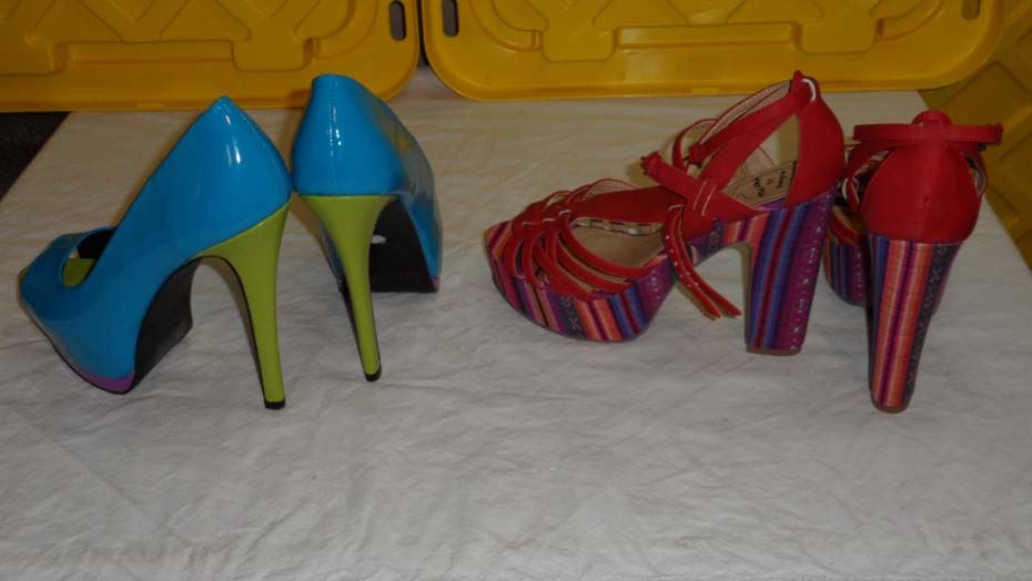 Stiletto 4" heel Blue Size 9 / Sandal 5" heel Striped Red Size 39
