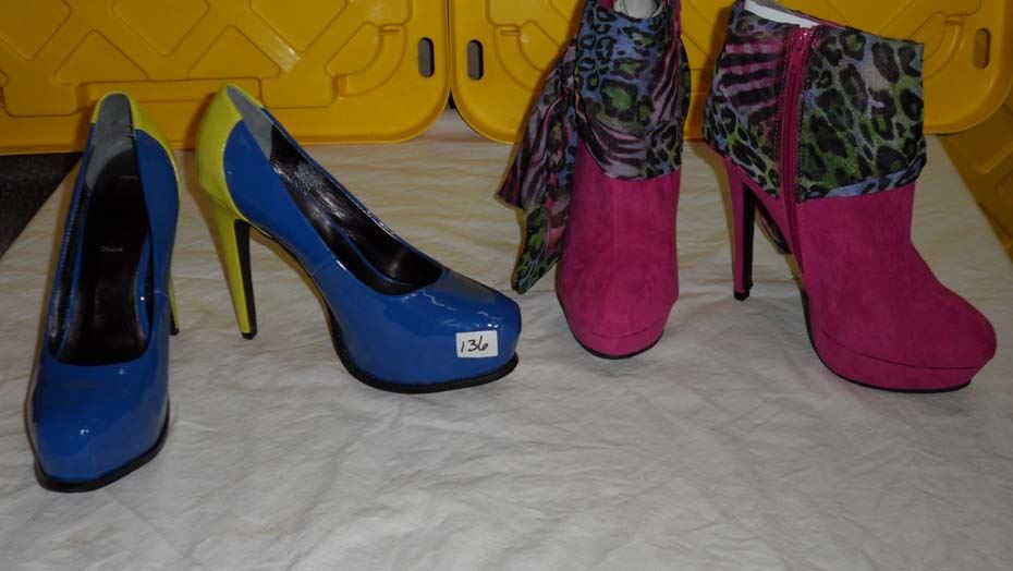 Pump 5" heel Blue Size 7.5 / Suede Boots 5" heel Pink Size 7.5