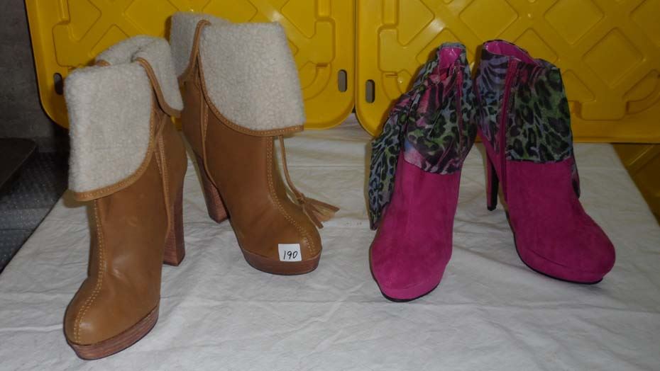 Leather Boots 4" heel Tan Size 10 / Suede Fashion Boot 5" heel Pink Size 40