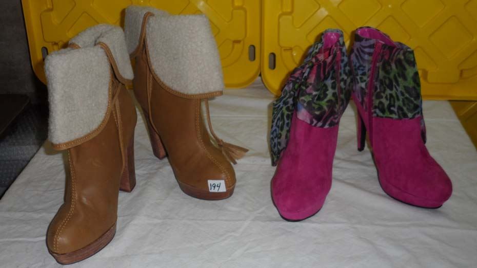 Leather Boots 4" heel Tan Size 40 / Suede Fashion Boot 5" heel Pink Size 10