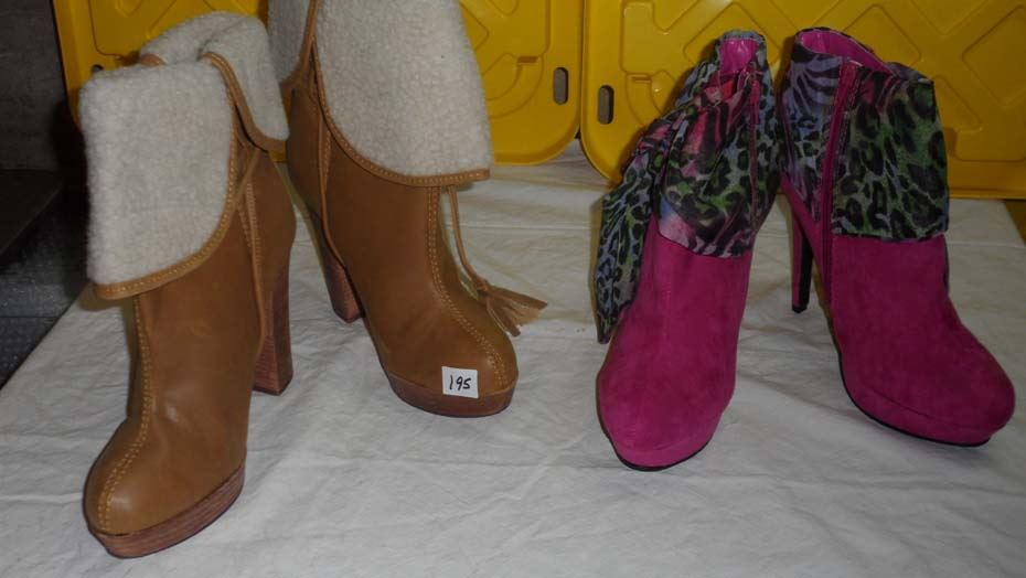 Leather Boots 4" heel Tan Size 38 / Suede Fashion Boots 5" heel Pink Size 8