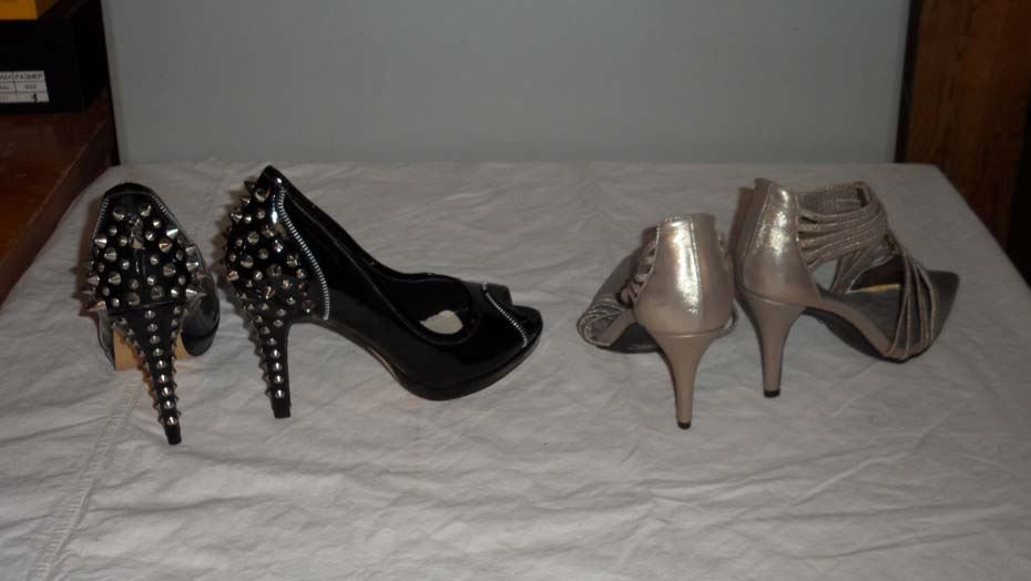 Shoe with Studs 4" Black Size 6 / Sandal 3" Taupe Size 6