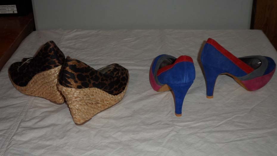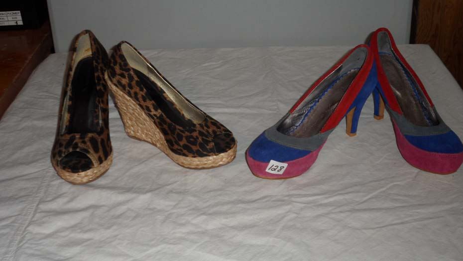 Sandal 3.5" heel Animal Print Size 37 / Suede Pump 2.5" heel Pink/Blue/Grey Size 37