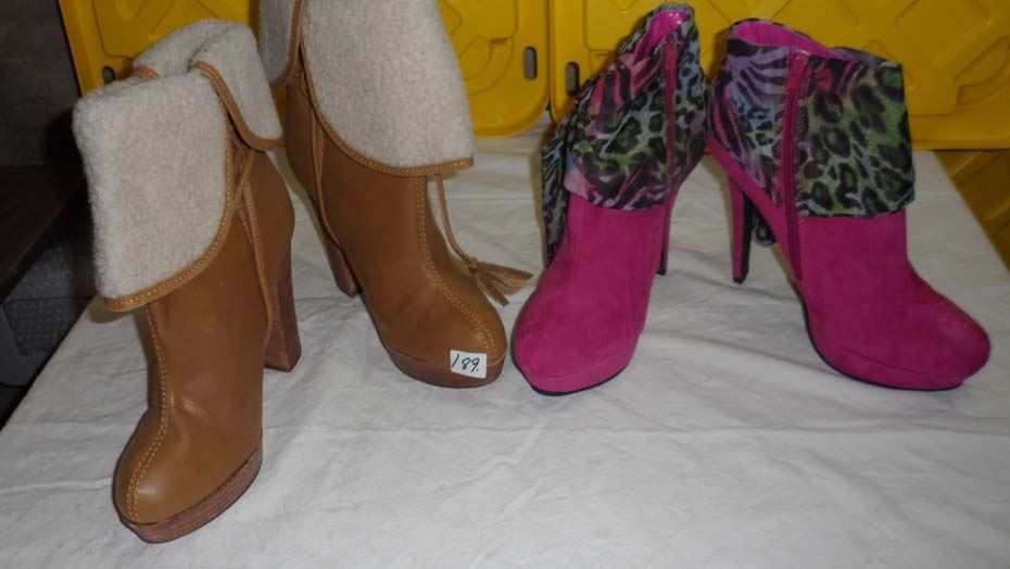 Leather Boots 4" heel Tan Size 39 / Suede Fashion Boot 5" Pink Size 9