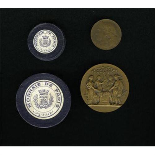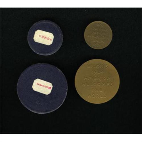 <B>Pair of Paris Mint 1904 St. Louis World's Fair Medals.</B></I> <B>Head of Ceres left,</B></I> inscription reverse, Hendershott-30-270, 32 mm, bronze, and an <B>America Welcomes the World,</B></I> 50 mm, four allegorical female figures, inscription reverse, Hendershott-30-280, bronze, Both medals are matte-finish Mint State with minor carbon, and come with their VF original black and white cardboard boxes.<BR><BR><b>Shipping:</b> Coins & Currency (<a target="_blank" href="http://www.heritageauctions.com/common/shipping.php">view shipping information</a>)
