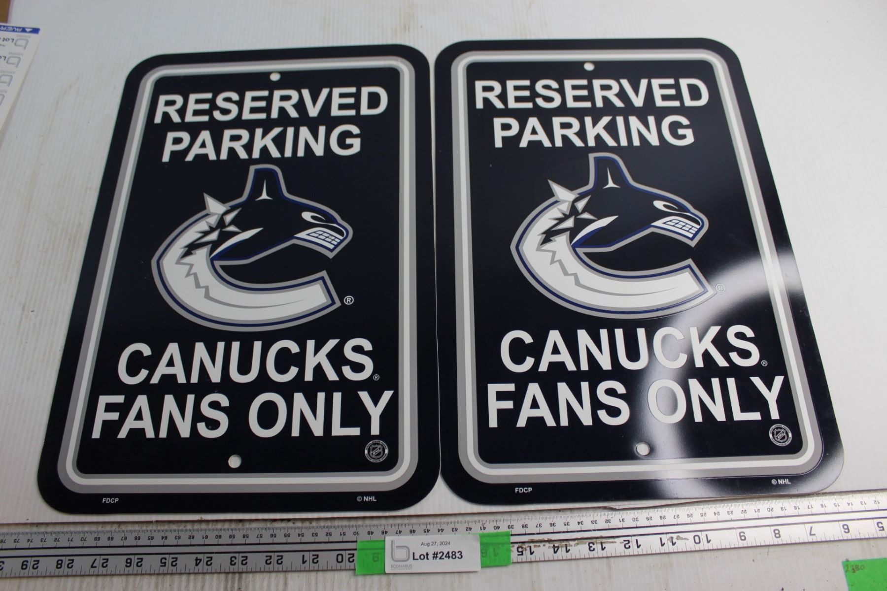 (2) Parking Reserved Canucks Fans Only Signs 18'' x 12''