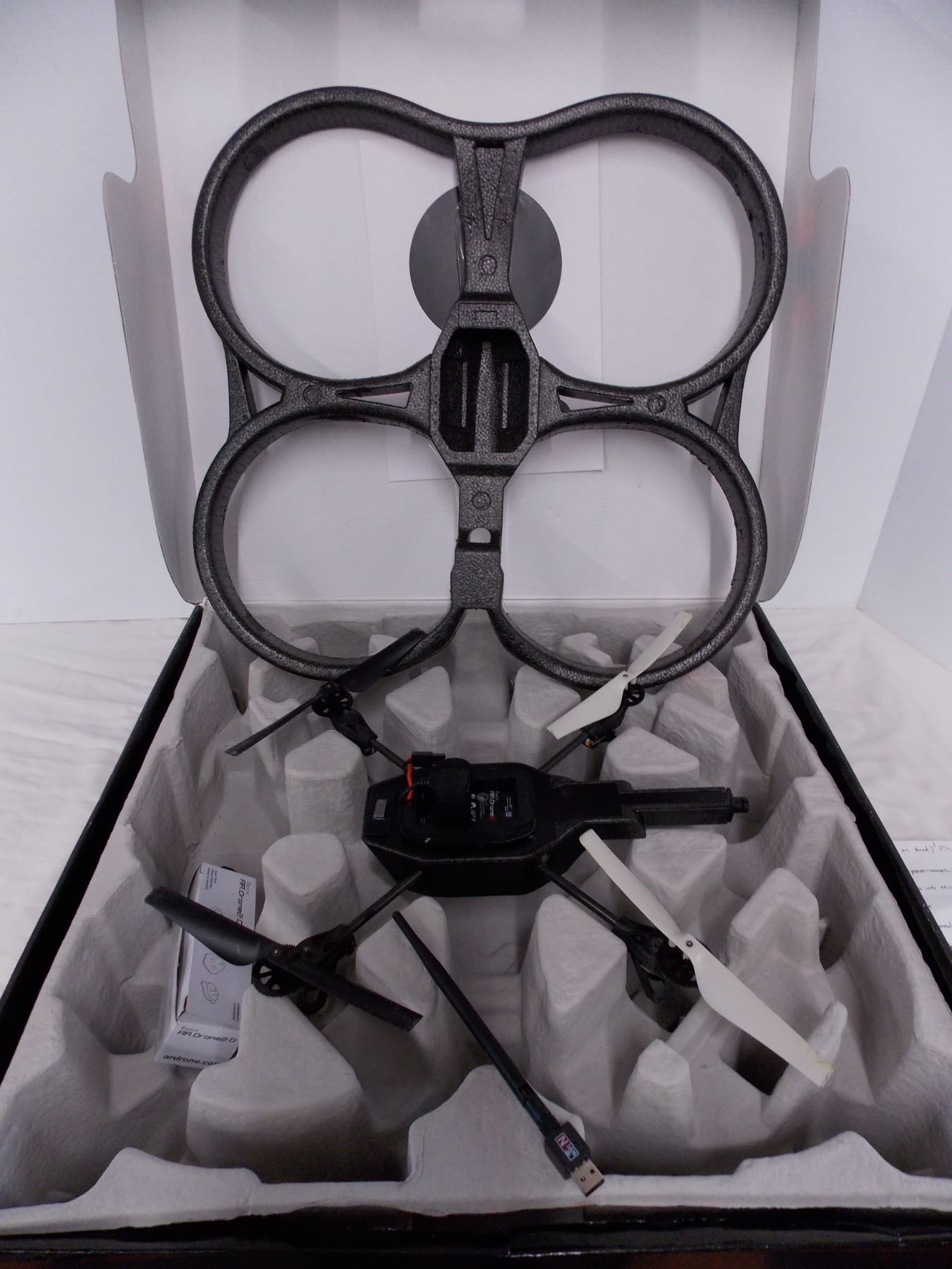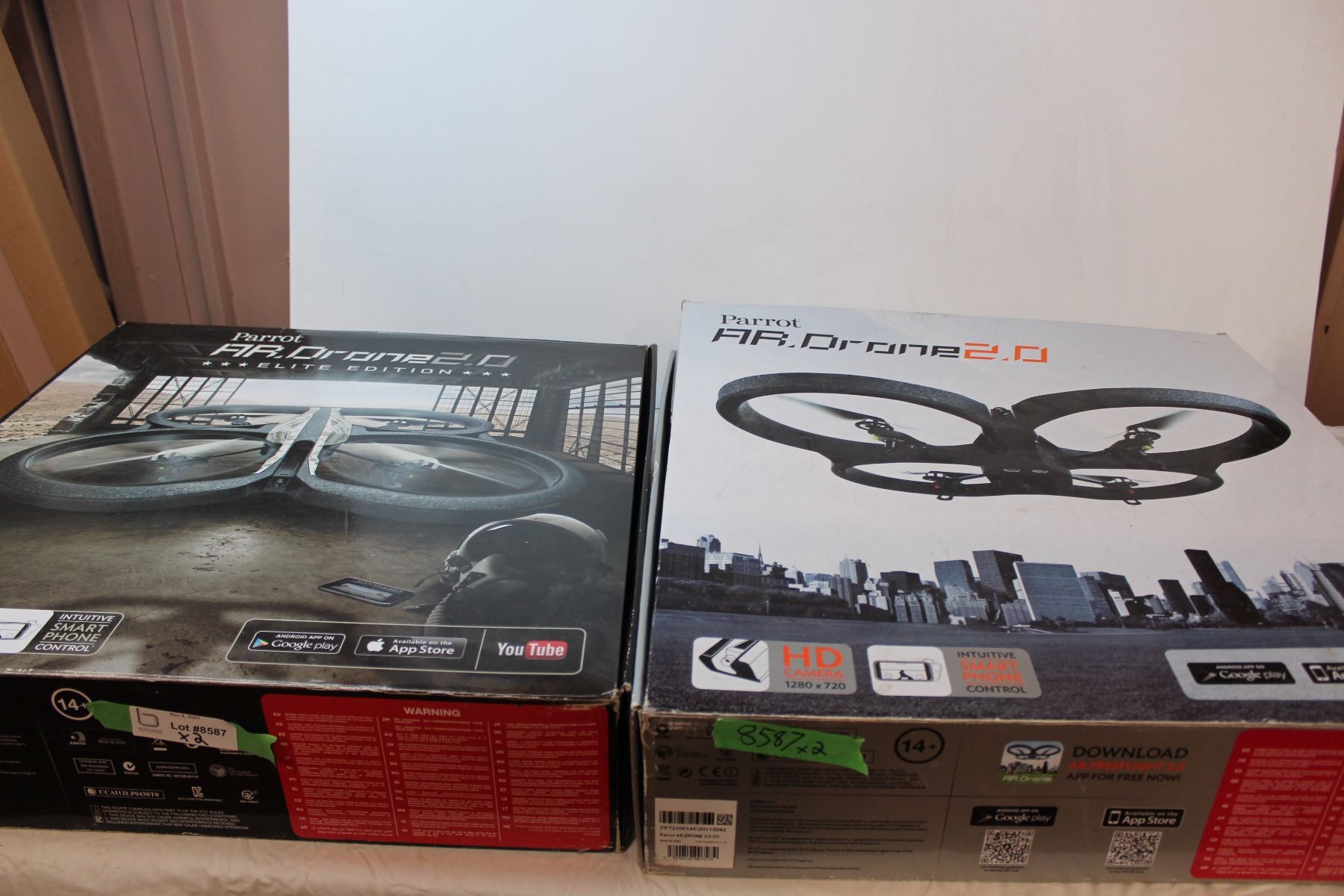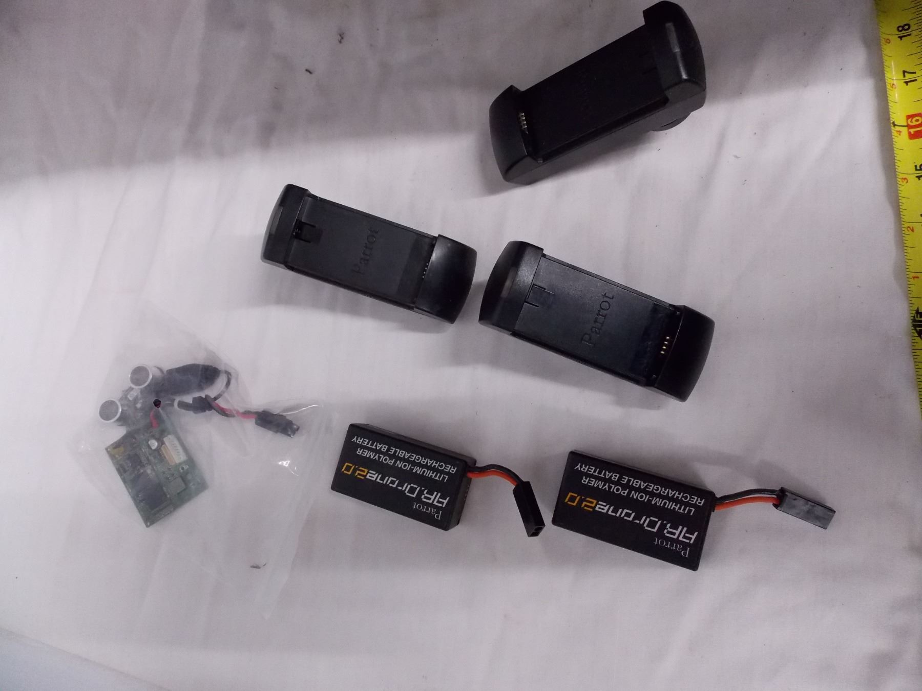 (2) Parrot drones - 1 looks to need repair / for parts - includes batteries, bodies, misc