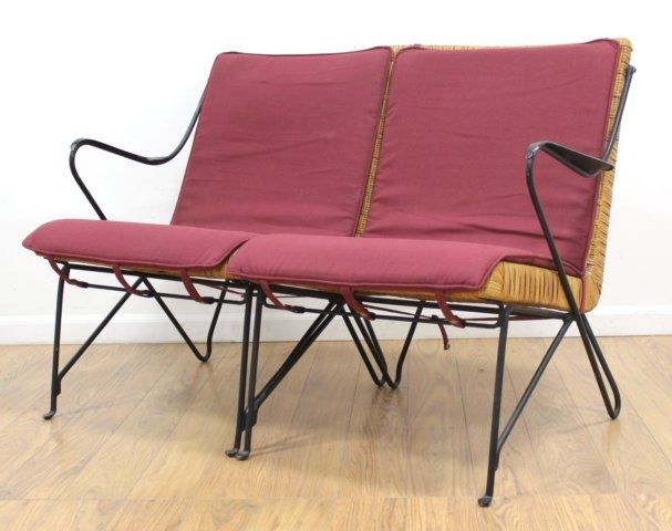 Woven grass and wrought iron. Each approx. 32 1/2" H x 24 1/2" W.