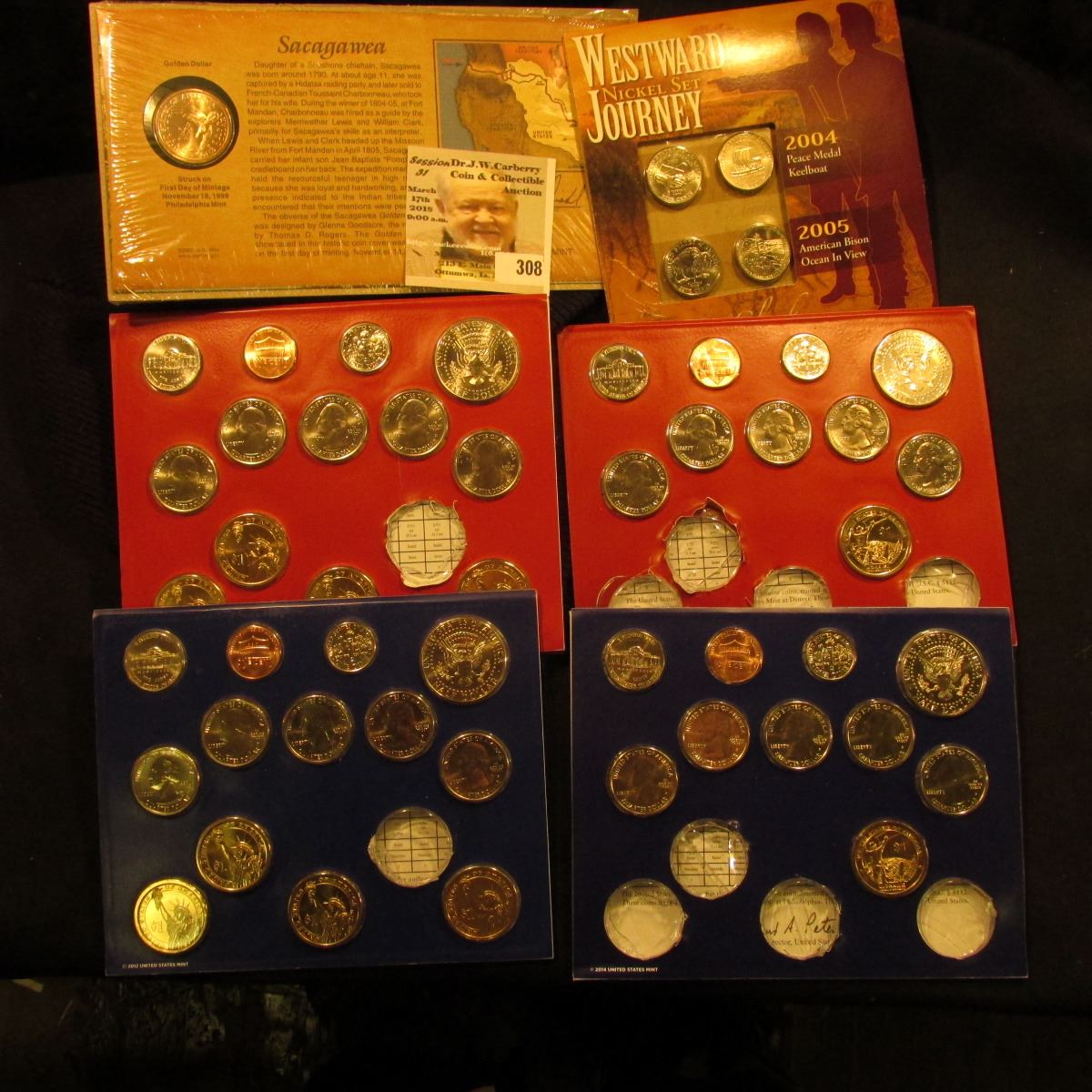 (2) Partial U.S. Mint Sets in original holders containing coins from 2013 & 2015, all Gem BU. (face value of $17.64); 2004 -2005 Westward Journey Nickel Set in original holder; & 2000 P Sacagawea Dollar, Brilliant Uncirculated. (total face value $18.84)