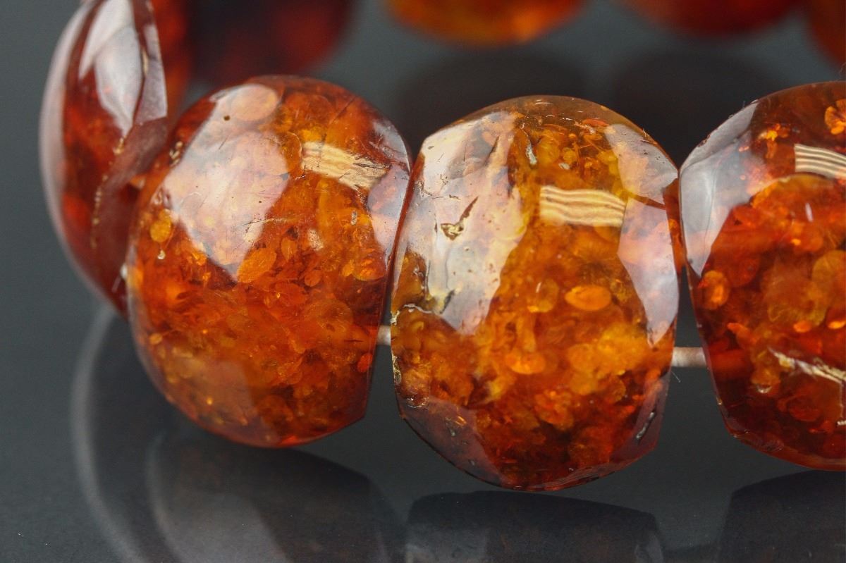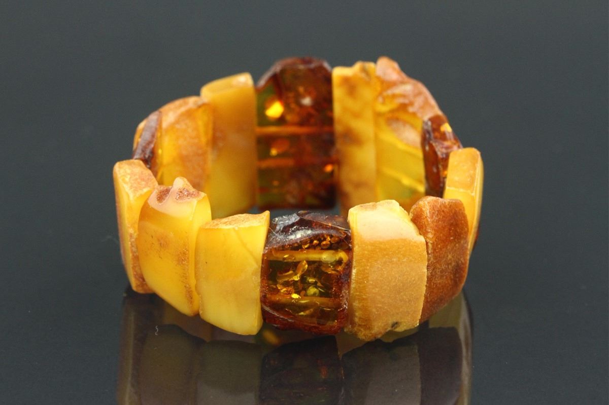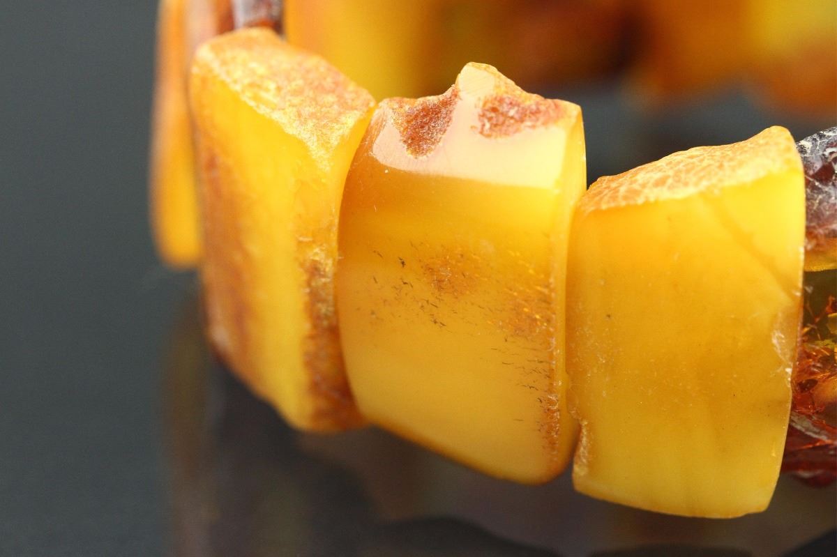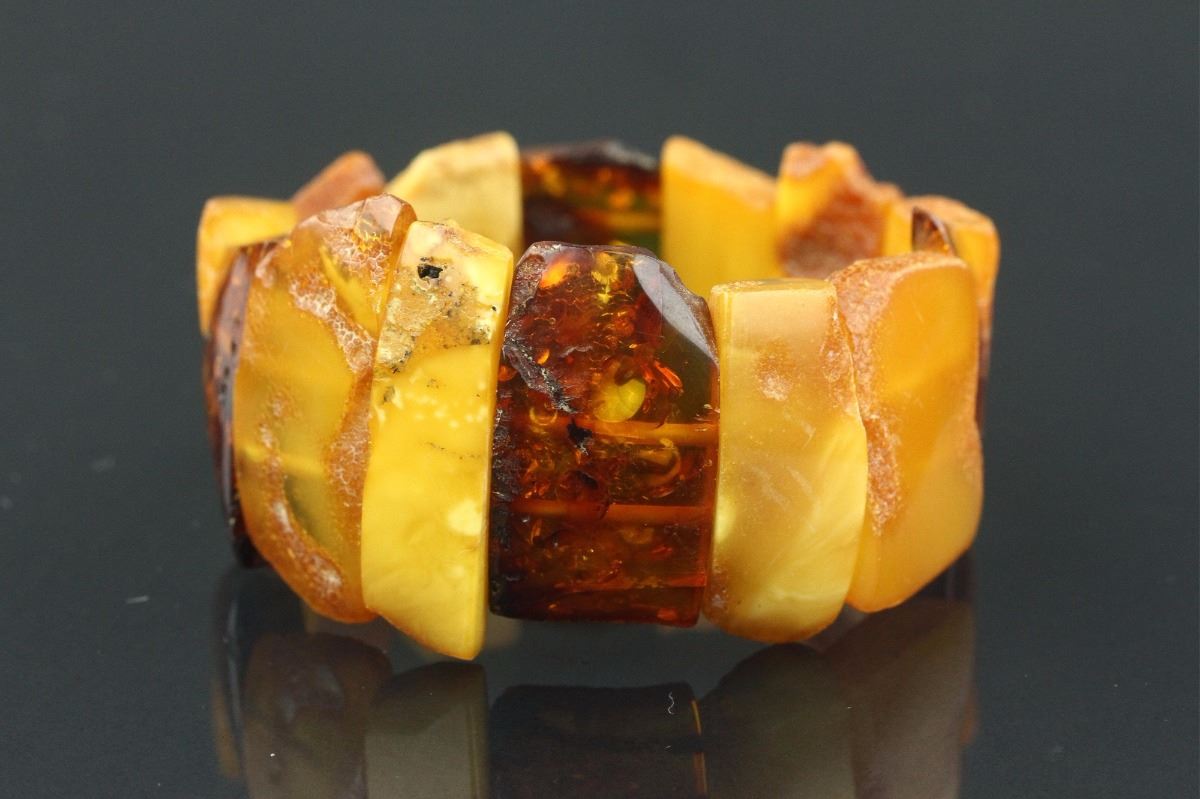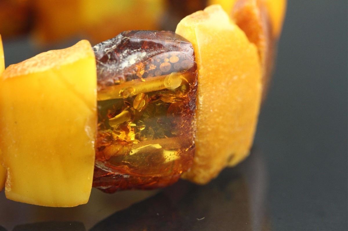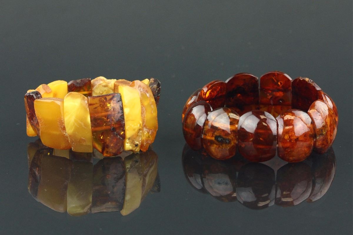 Two piece of Chinese amber bracelets; comprised of free-form amber beads; of brown and honey yellow tone; D: 7 cm, 65 grams both