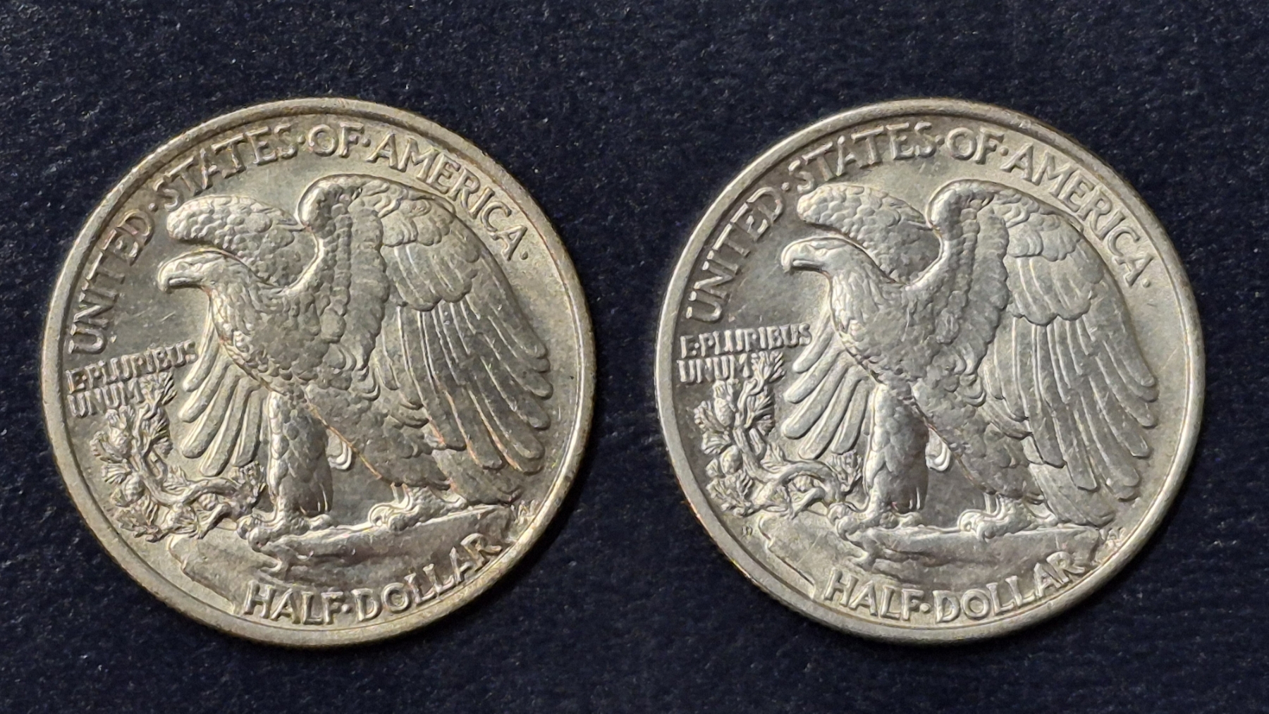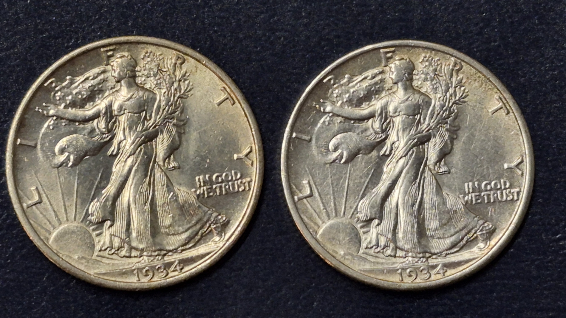 2 Pcs - 1934 P & 1934 D Walking Liberty Halve Dollars BU Condition