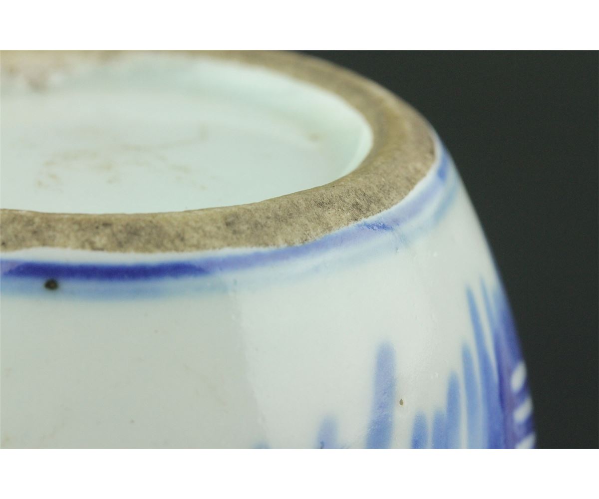 Two pieces of Chinese small porcelain items; comprised of one Junyao three-foot censer and a blue and white jar; H: 7.5 cm, D: 7 cm, 299 grams (both)