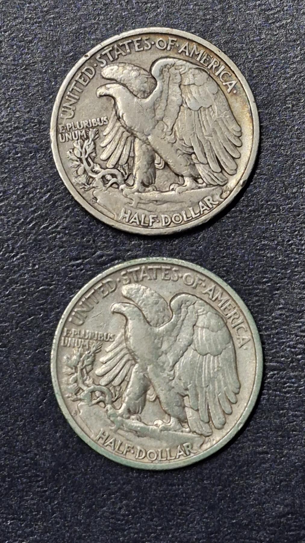 2 Pcs - Walking Liberty 90% Silver Halves - 1945 S - 1946 S - See Pics for condition