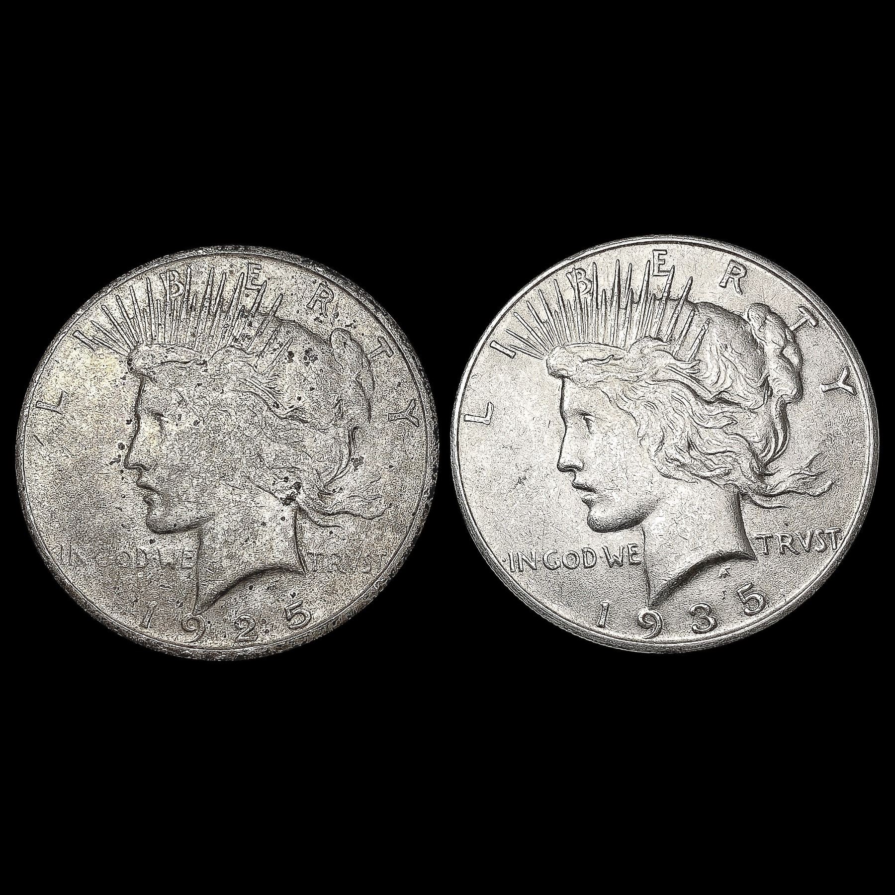 [2] Peace SilveDollars [1925-S, 1935-S] CLOSELY UNCIRCULATED