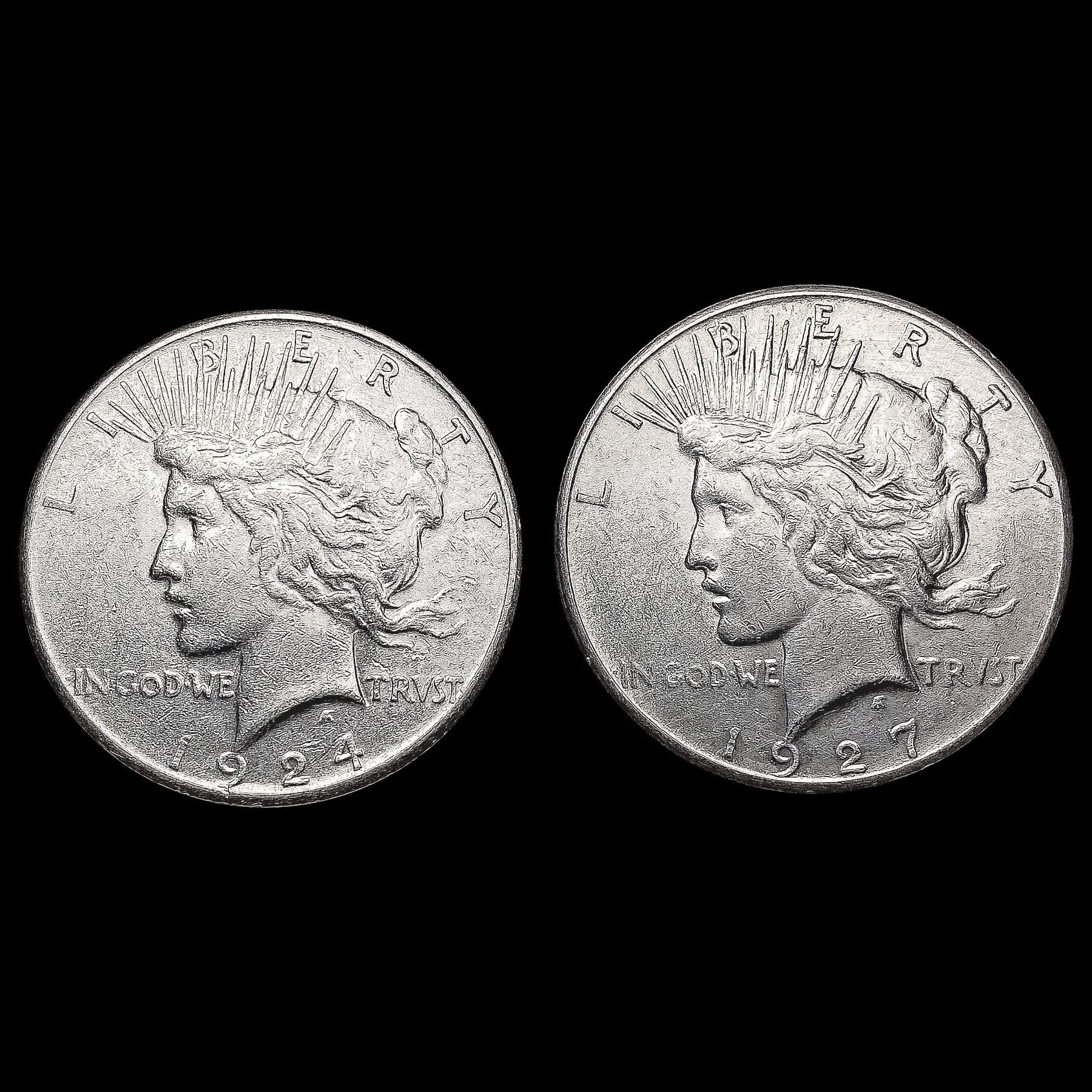 [2] Peace Silver Dollars [1924-S, 1927] CLOSELY UN