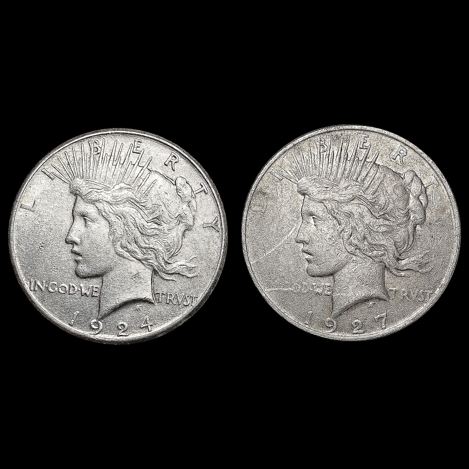 [2] Peace Silver Dollars [1924-S, 1927-D] CLOSELY