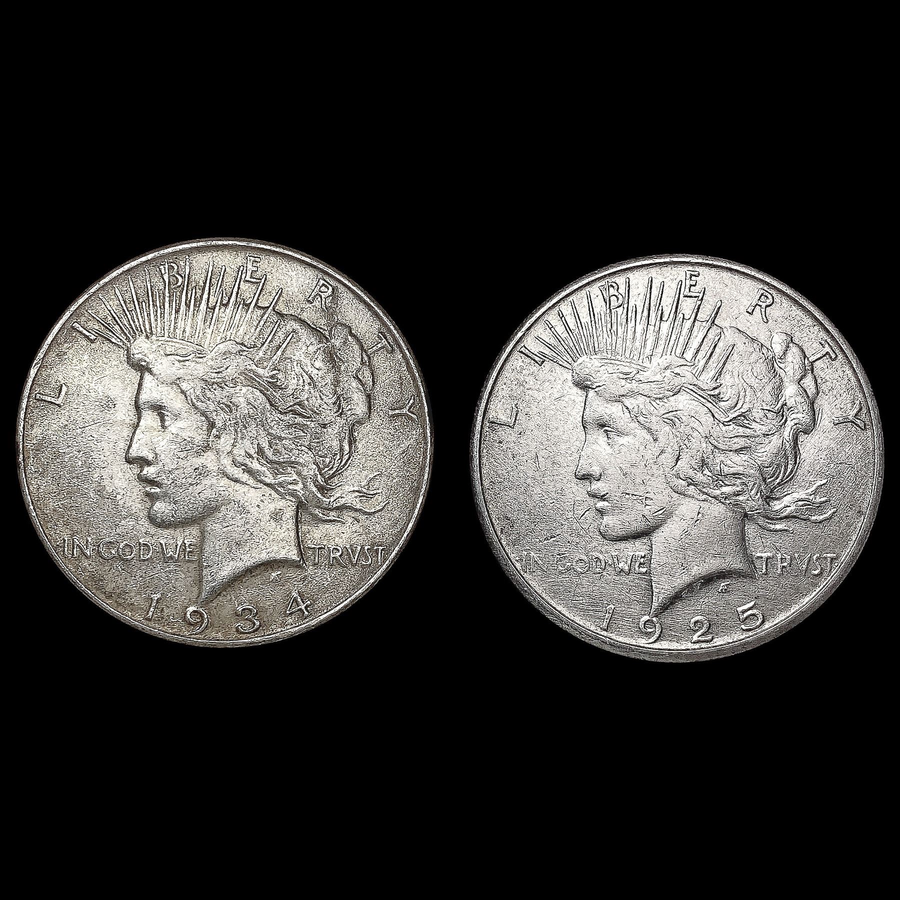[2] Peace Silver Dollars [1925-S, 1934] CLOSELY UN