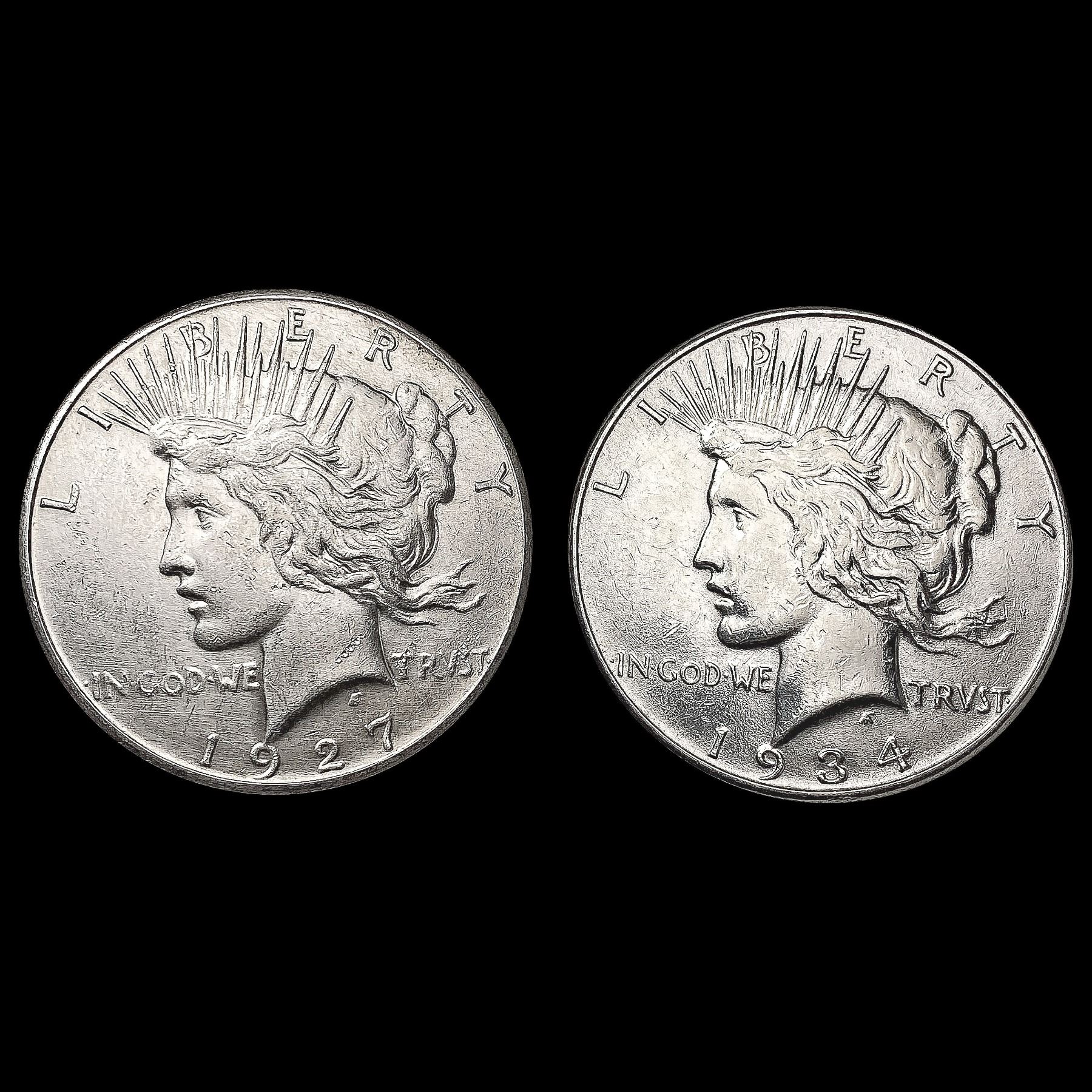 [2] Peace Silver Dollars [1927, 1934] CLOSELY UNCI