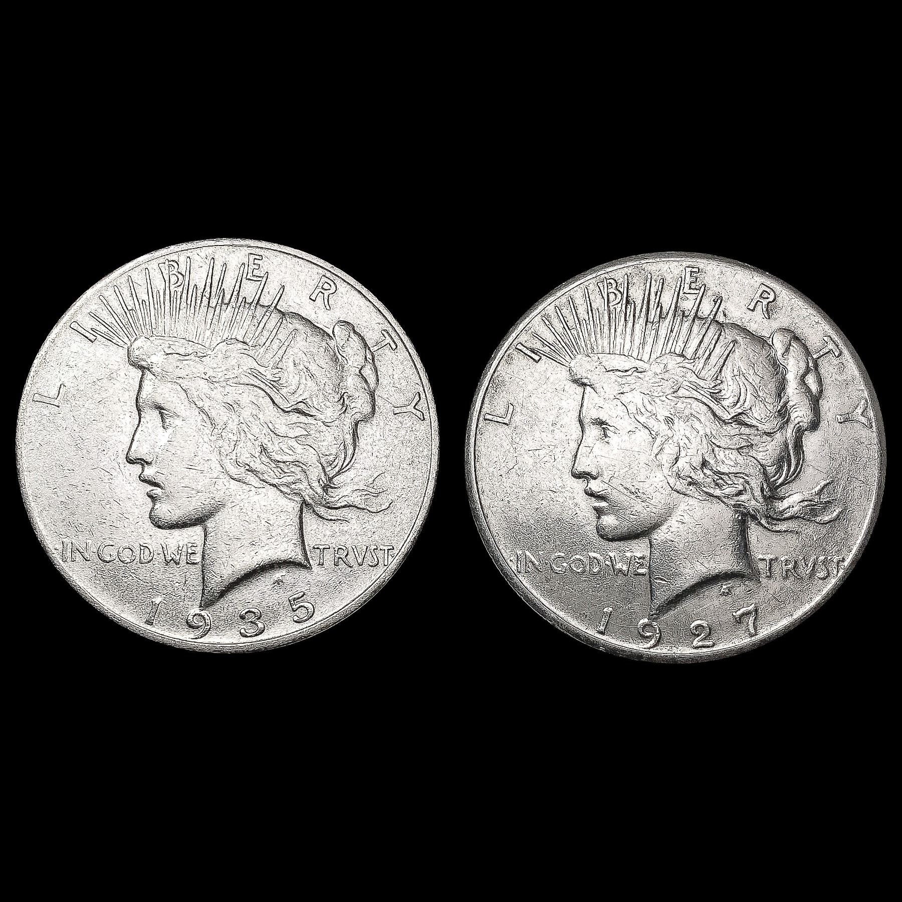 [2] Peace Silver Dollars [1927, 1935-S] CLOSELY UN