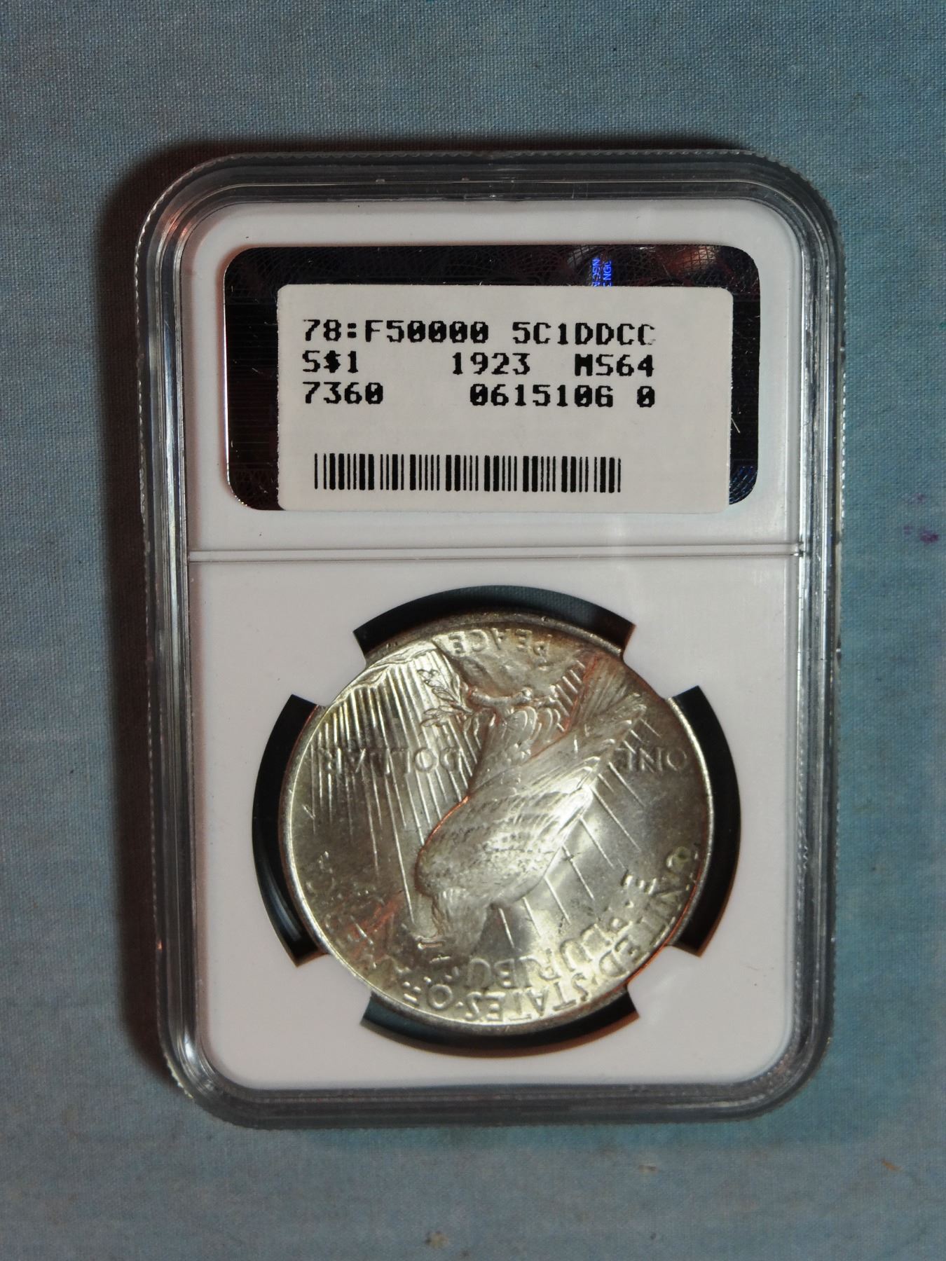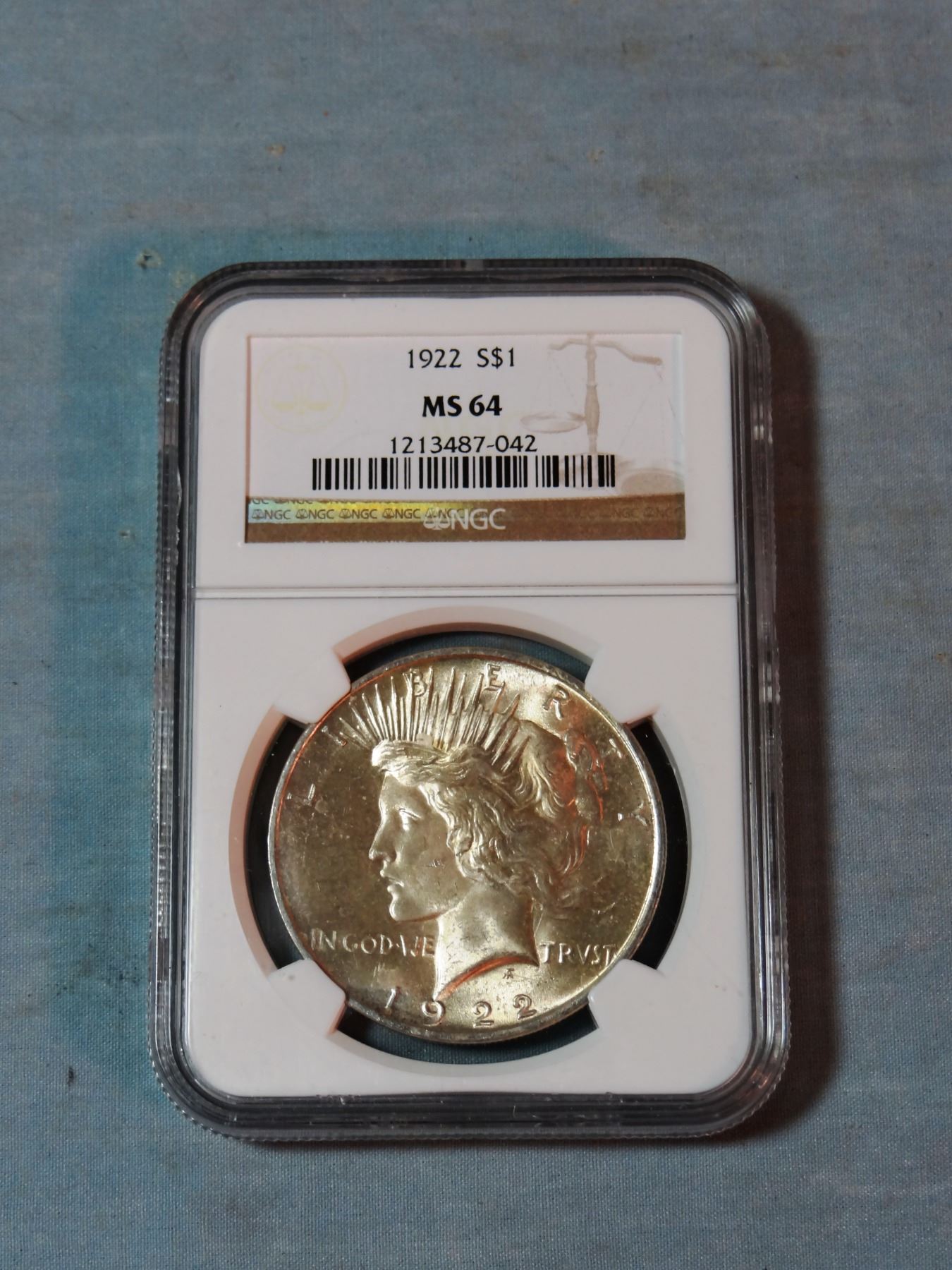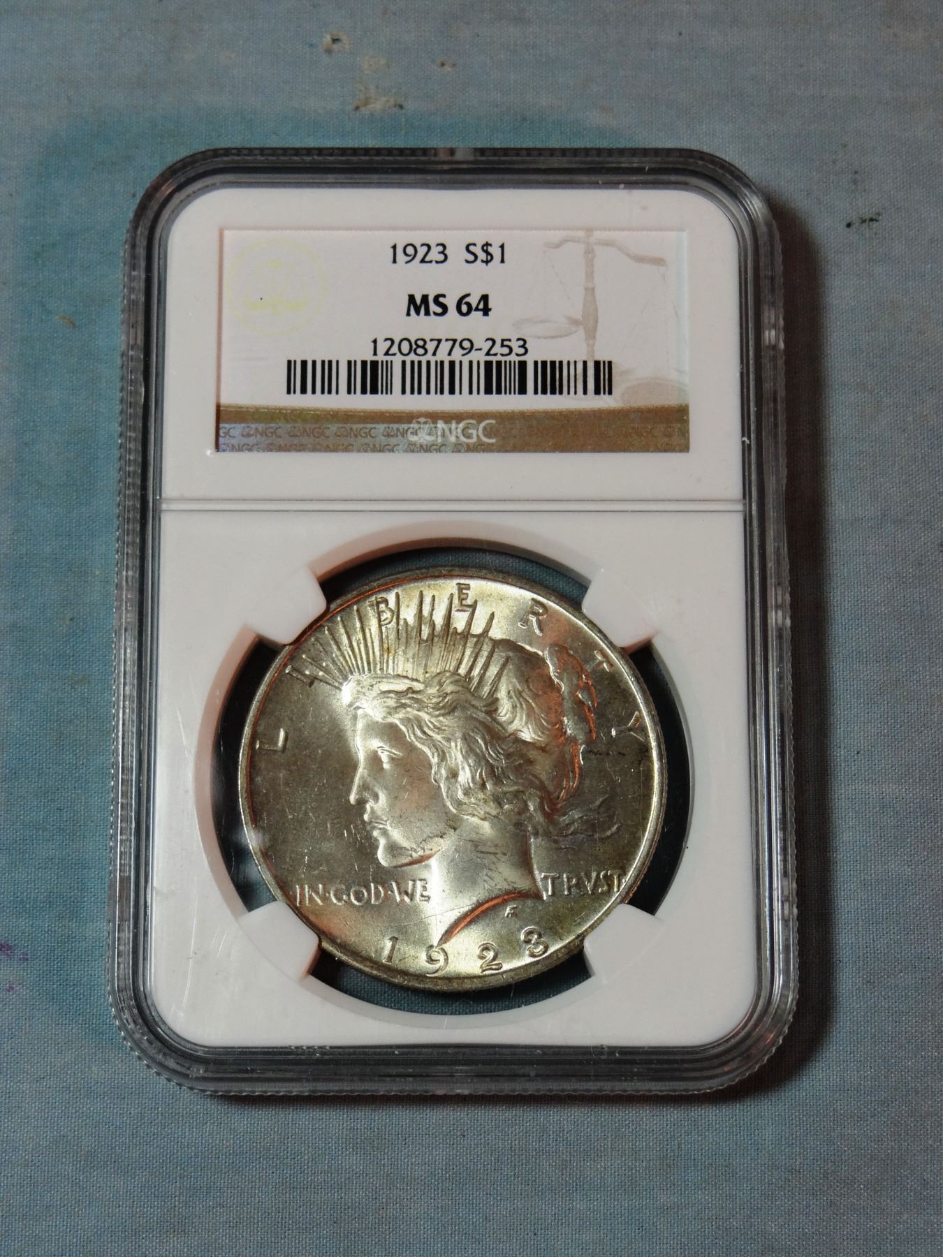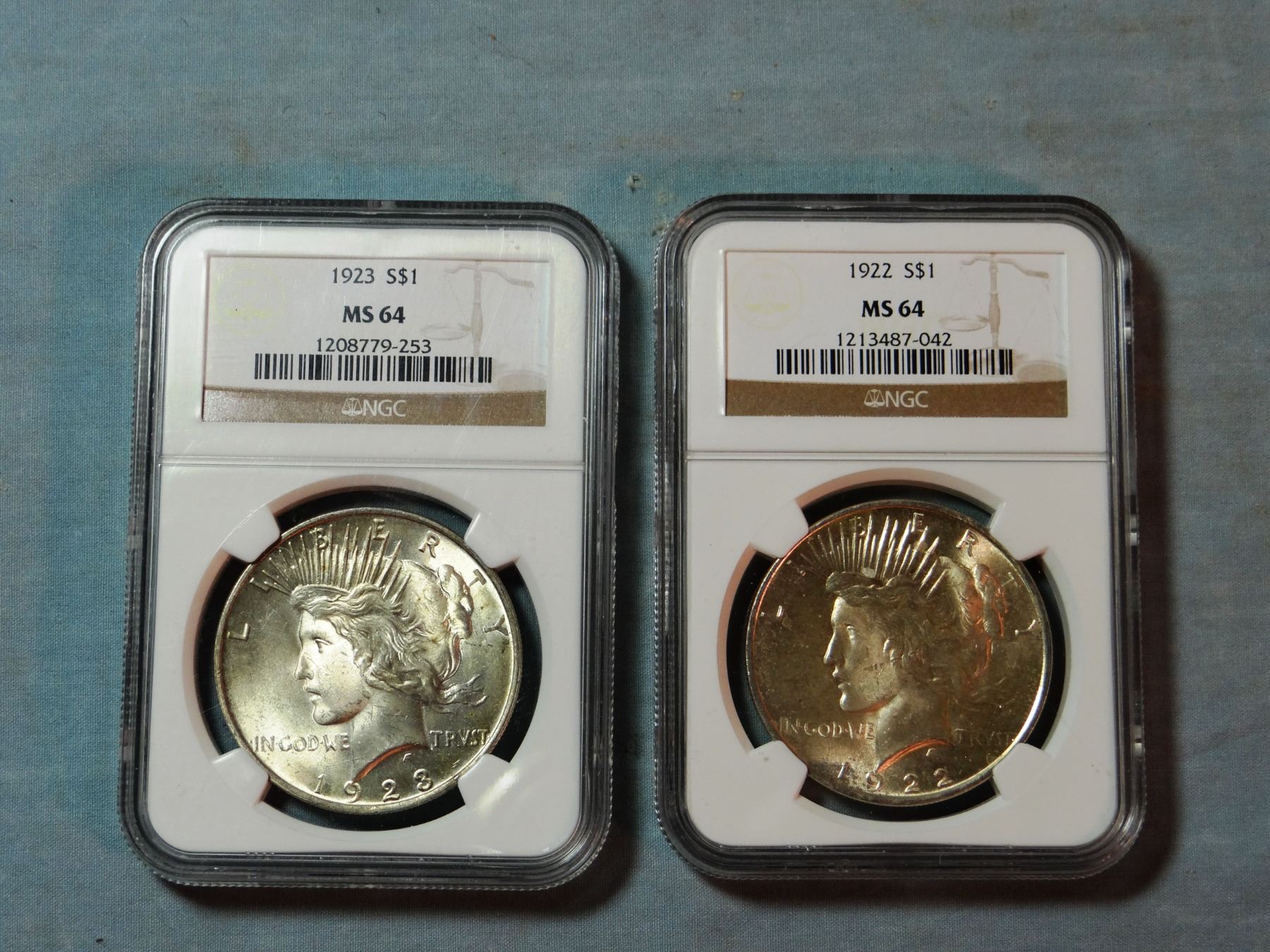 2 Peace dollars, 1922 and 1923, both NGC MS 64