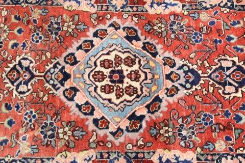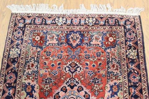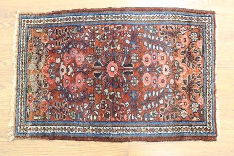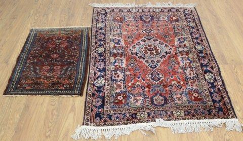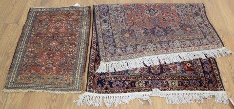 Red background. Circa 1920s-30s. Approx. 4' x 6' and 2' x 4'. From an Edgewater, NJ estate. 4' x 6' rug refringed. 2' x 4' rug good condition.