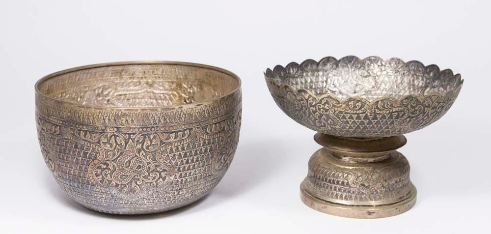 Footed approx. 4 1/2" H x 6 3/4" W, other approx. 4 1/4" H x 7 1/4" W. Total weight approx. 13.6 ozt (422.3 g). (6055)
