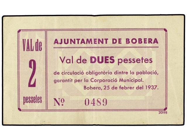 2 Pessetes. - 25 Febrer 1937. - Aj. de BOBERA. - MUY ESCASO. AT-522; T-559. MBC+. - -