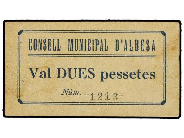 2 Pessetes. C.M. d´ALBESA. Cartón. RARO. AT-64a; T-85. MBC+.