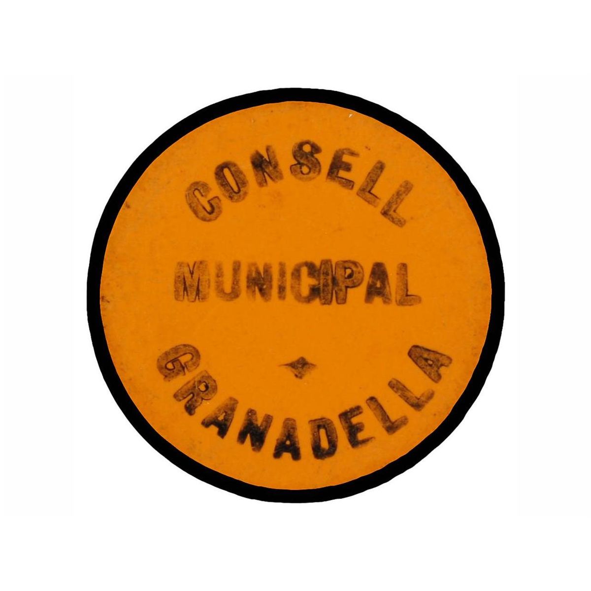 2 Pessetes. - C.M. de GRANADELLA. - Disco de celuloide. RARÍSIMO. AT-1162 ;T-1340. MBC+. - -