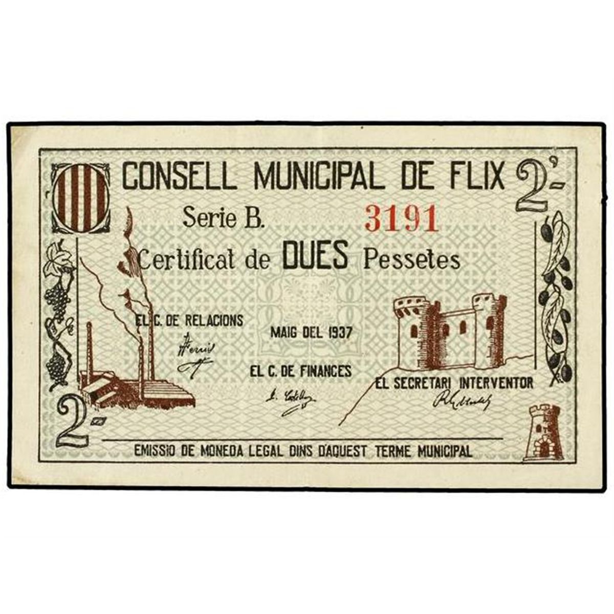 2 Pessetes. - Maig 1937. - C.M. de FLIX. - ESCASO. AT-1017; T-1187. EBC-. - -