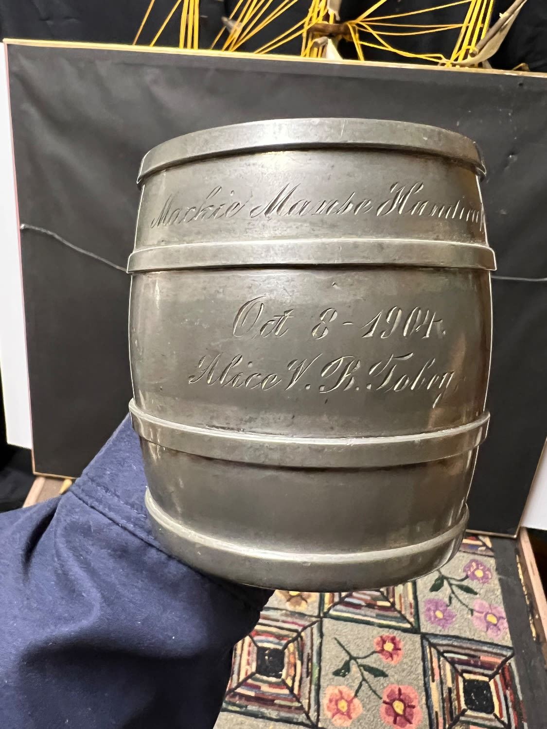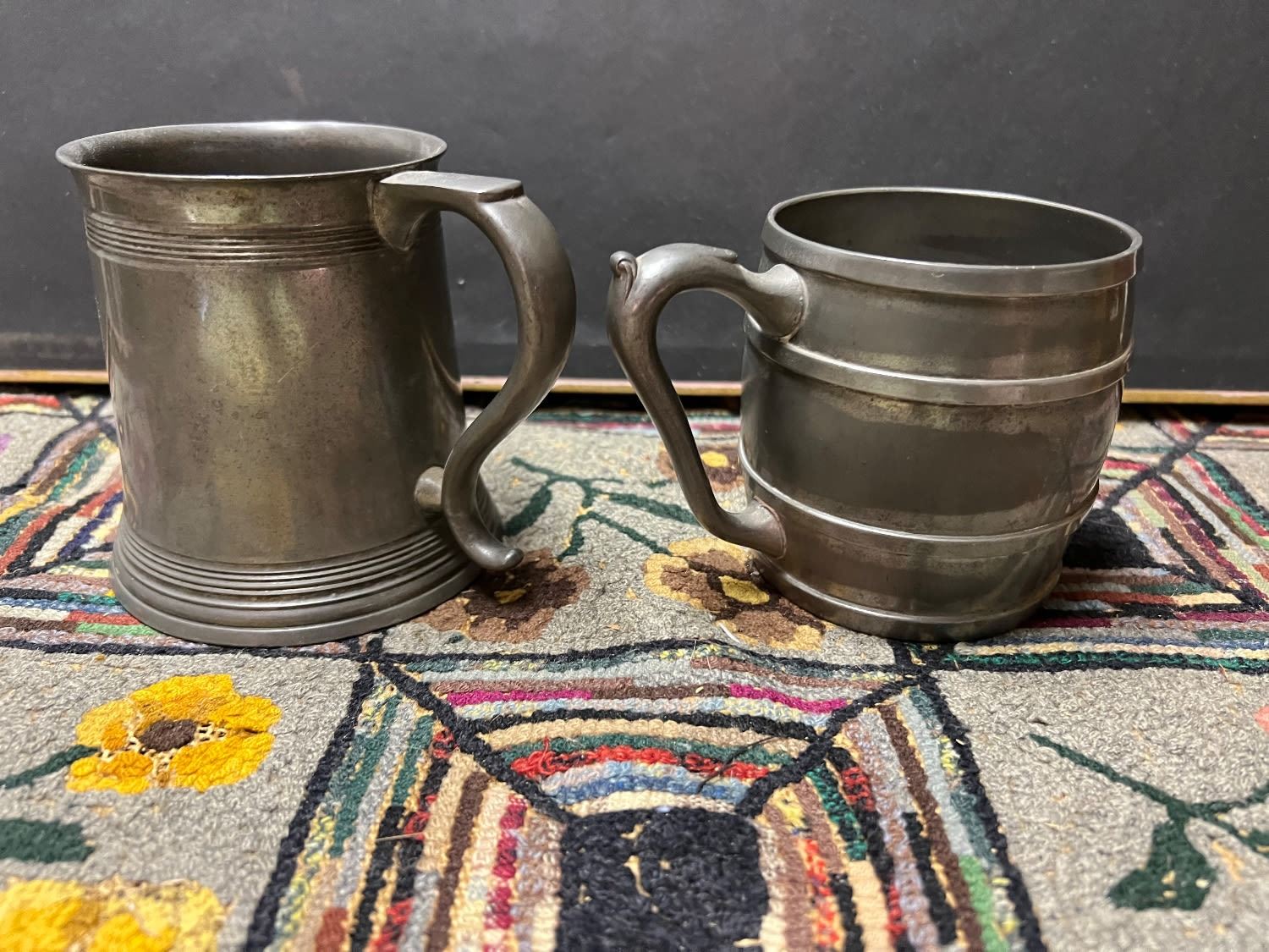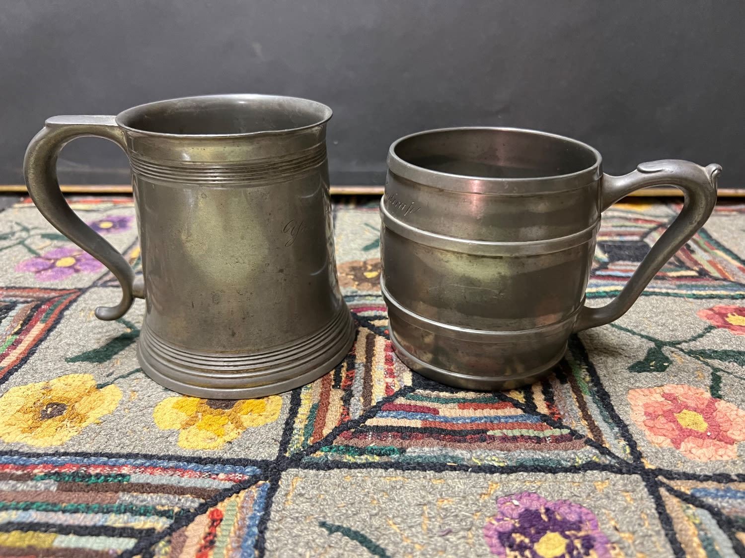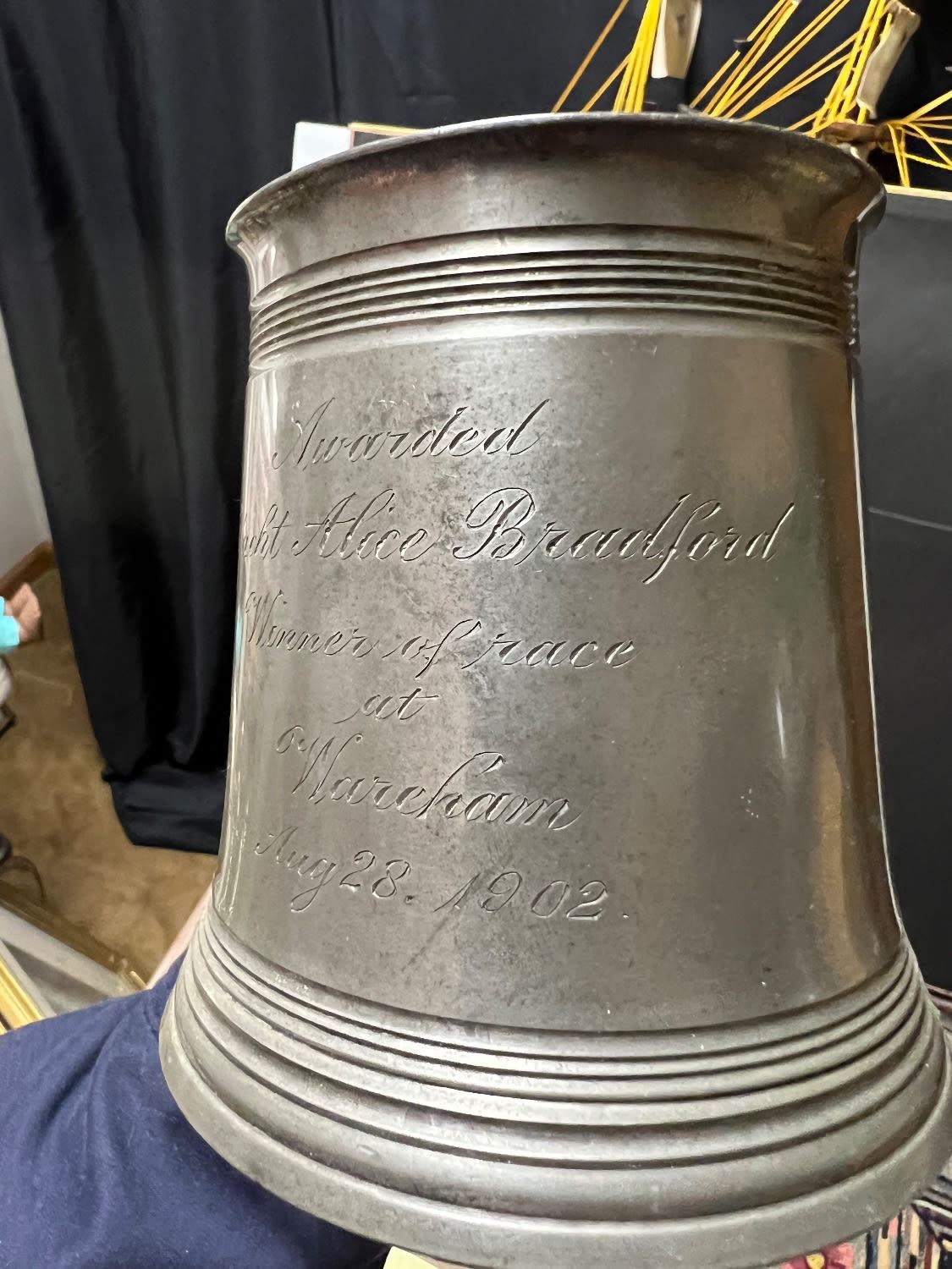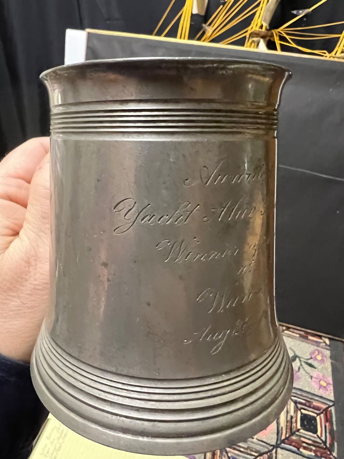 (2) Pewter NAUTICAL theme mugs dated 1902-1904 WAREHAM YACHT CLUB