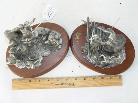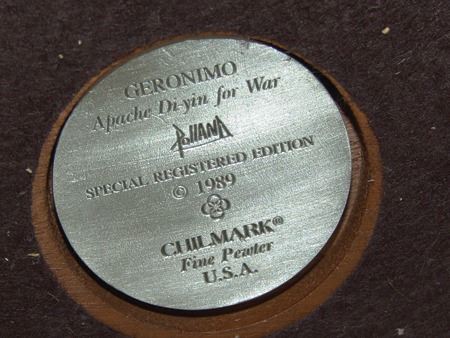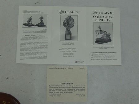 Ca. 1989 & 1992, Two limited edition miniatures including "Salmon Run," and "Geronimo Di-Yin For War," both from the American West Redemption series. Excellent condition. 7-1/2" x 6" x 5-1/2"; 7-1/2" x 6" x 5-1/