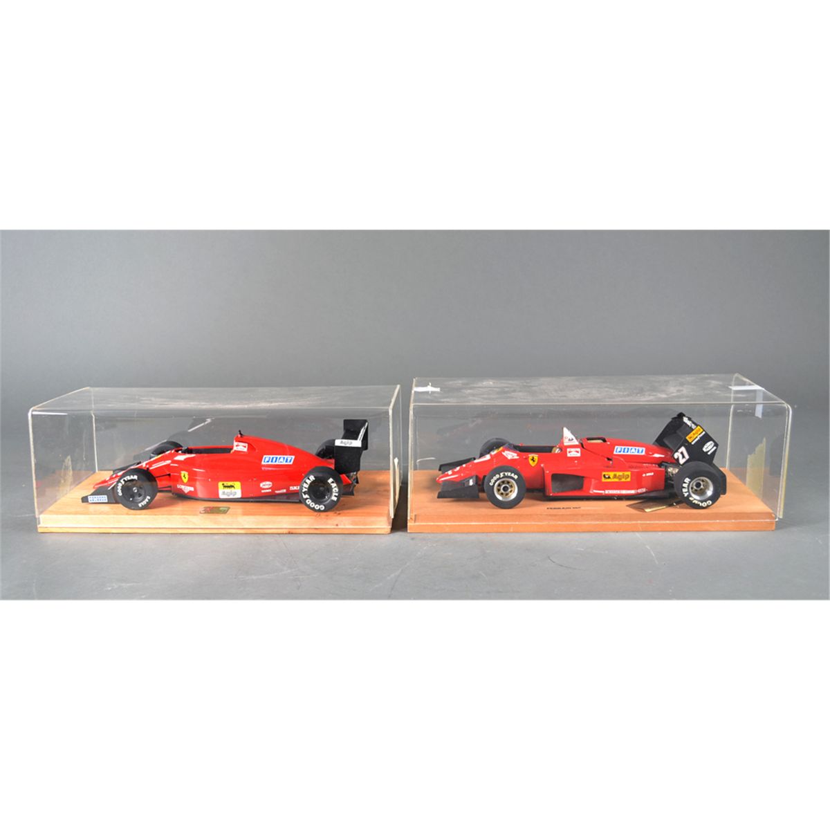 Both finely model to depict formula one races both in Plexiglas cases with wood bases, Larges is 12.5"L very good quality. Private collection St. Claire Shores, MI