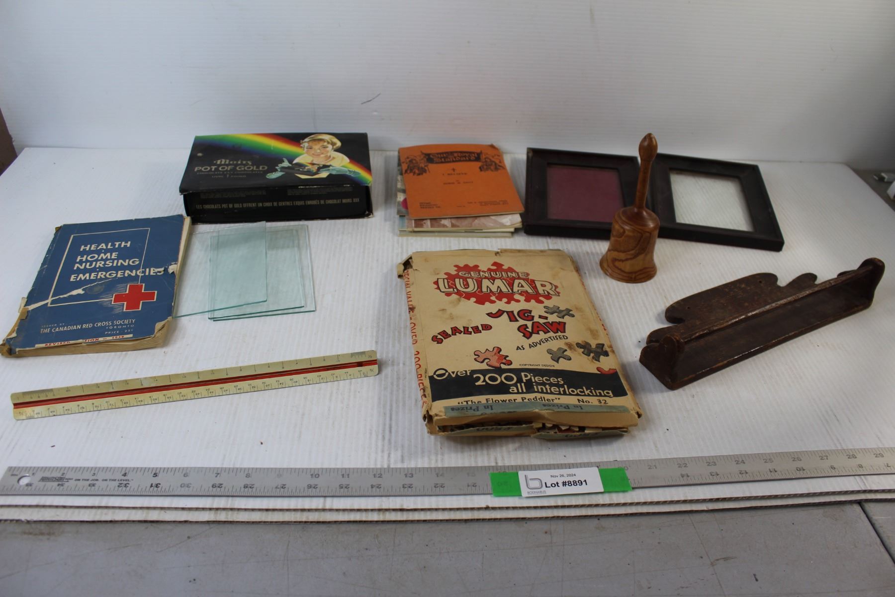(2) Picture Frames, Scale Ruler, Wooden Bell