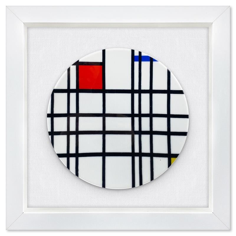"Composition with Yellow, Blue & Red and Composition B with Red" is a 2-piece Limoges porcelain plate set by Piet Mondrian (1872-1944). These plates come custom framed and floated on linen. Measures approx. 13.5" x 13.5" (frame), 8.5" (plate diameter). This item requires special handling and may have a longer than usual turnaround.