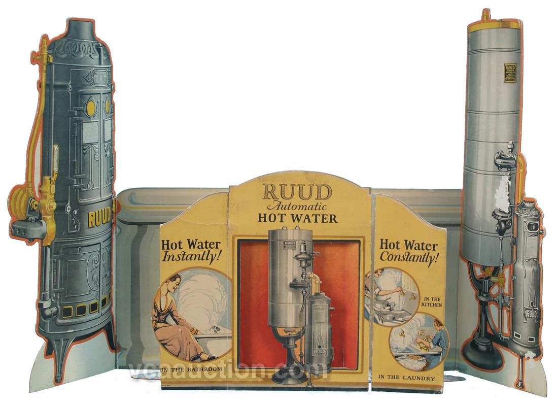 2 Piece RUUD Automatic Hot Water Heaters Cardboard Store Window Display (little repairs) - approx. 36" x 21"