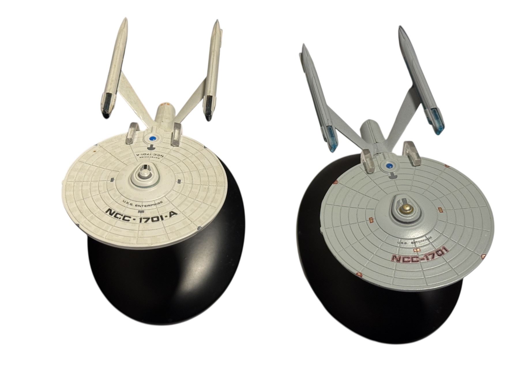 2 Piece Star Trek Starship Model - U.S.S. ENTERPRISE NCC-1701 0105-A/D TM & © 2013 CBS Studios Inc. , U.S.S. ENTERPRISE NCC-1701-A 0567-A/D TM & © 2017 CBS Studios Inc. with base & stand. DOESN'T INCLUDE BOX(ES)