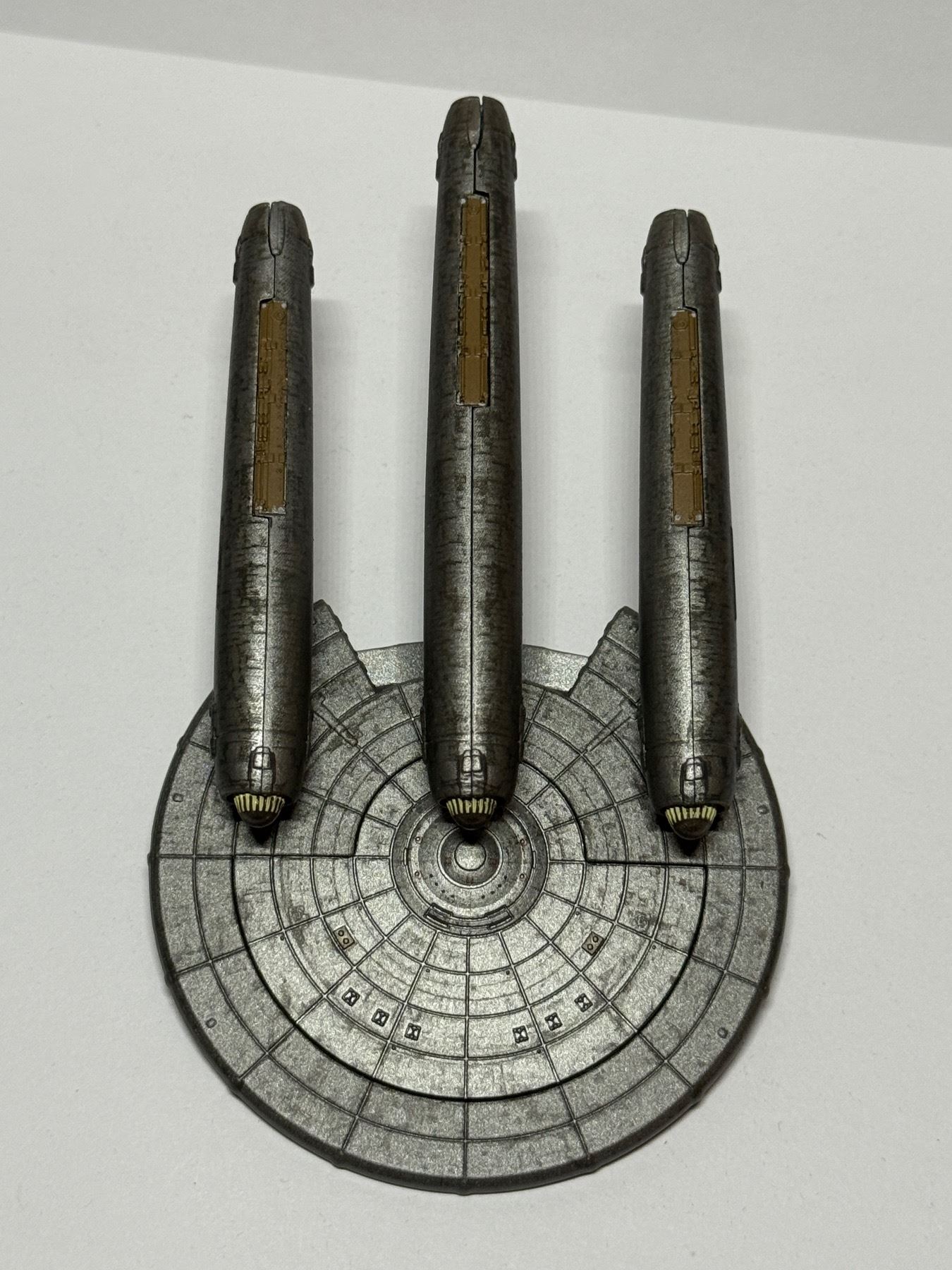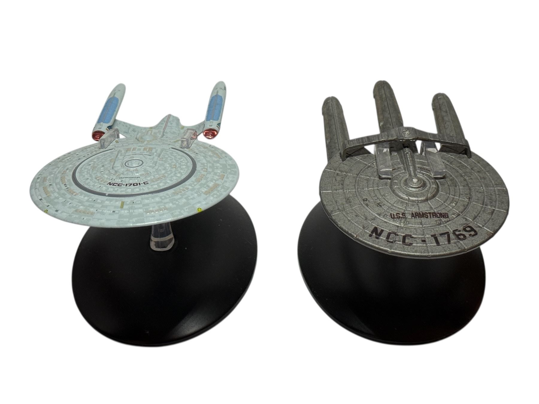 2 Piece Star Trek Starship Models - C.S.S. ENTERPRISE NCC-1701-CONCEPT 5194 -A/A TM & © 2017 CBS Studios Inc. , U.S.S. ARMSTRONG NCC-1769 0206-A/A TM & © 2021 CBS Studios Inc. with base & stand. DOESN'T INCLUDE BOX(ES)
