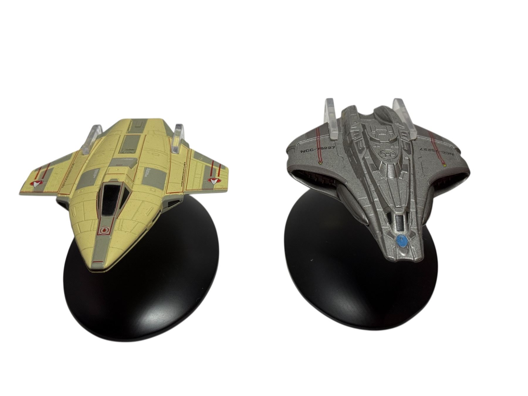 2 Piece Star Trek Starship Models - STARFLEET SCOUT SHIP 4101-A/C TM & © 2017 CBS Studios Inc. , STARFLEET ACADEMY TRAINER 0840-A/B TM & © 2017 CBS Studios Inc. with base & stand. DOESN'T INCLUDE BOX(ES)