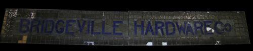 2 Pieces of Advertising in Stained Leaded Glass, each piece 3' x 9'. One piece says " Bridgeville", the other "Hardware Co."