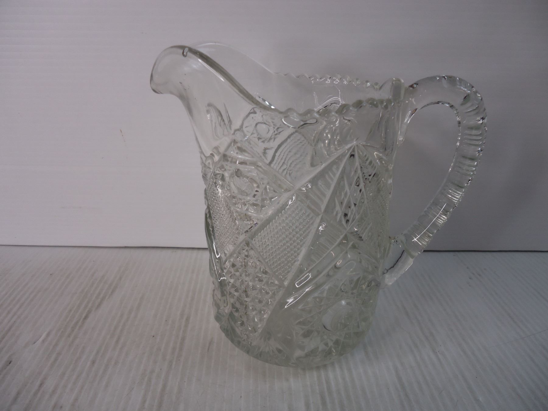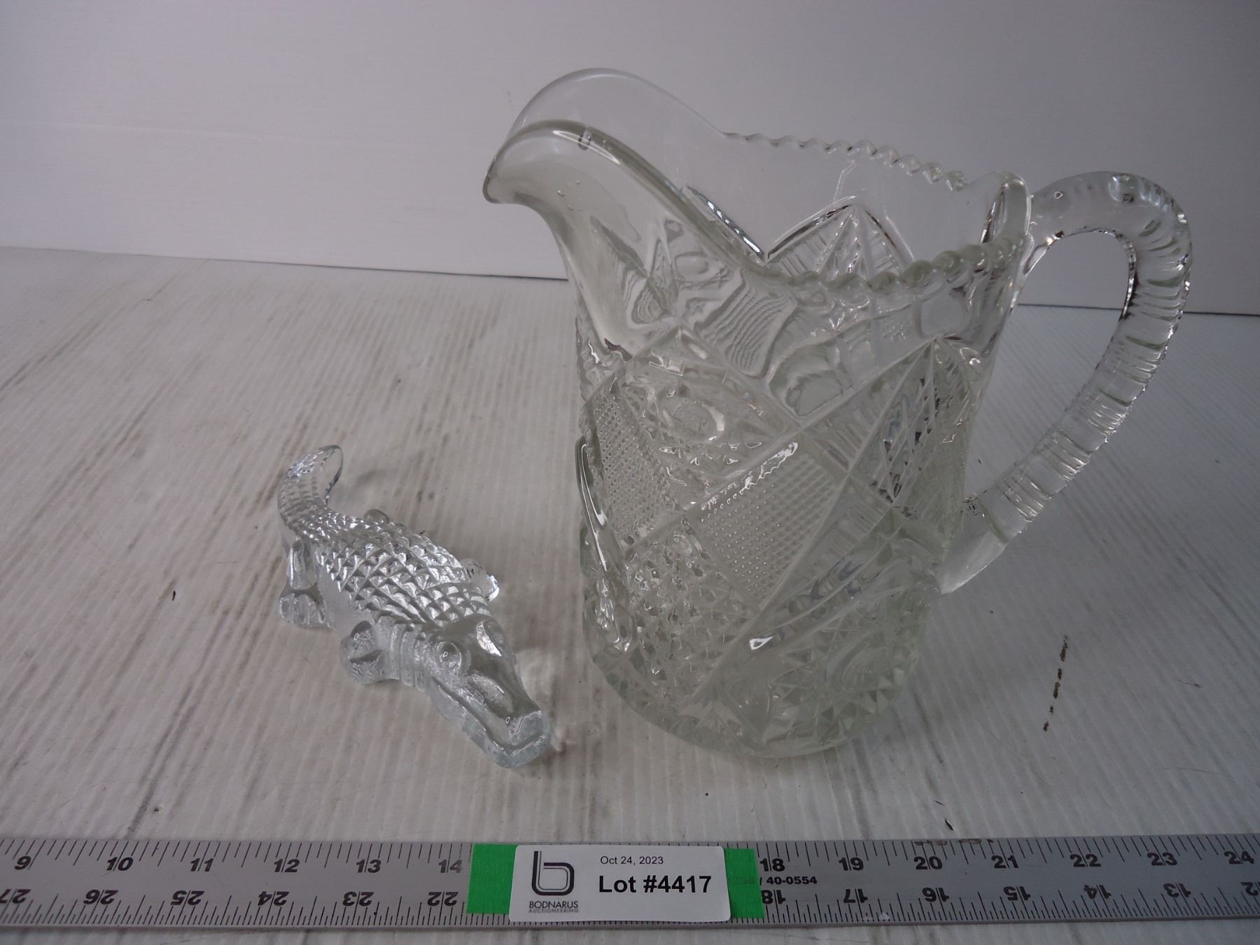(2) Pieces of Cut Glass- Pitcher and Crocodile