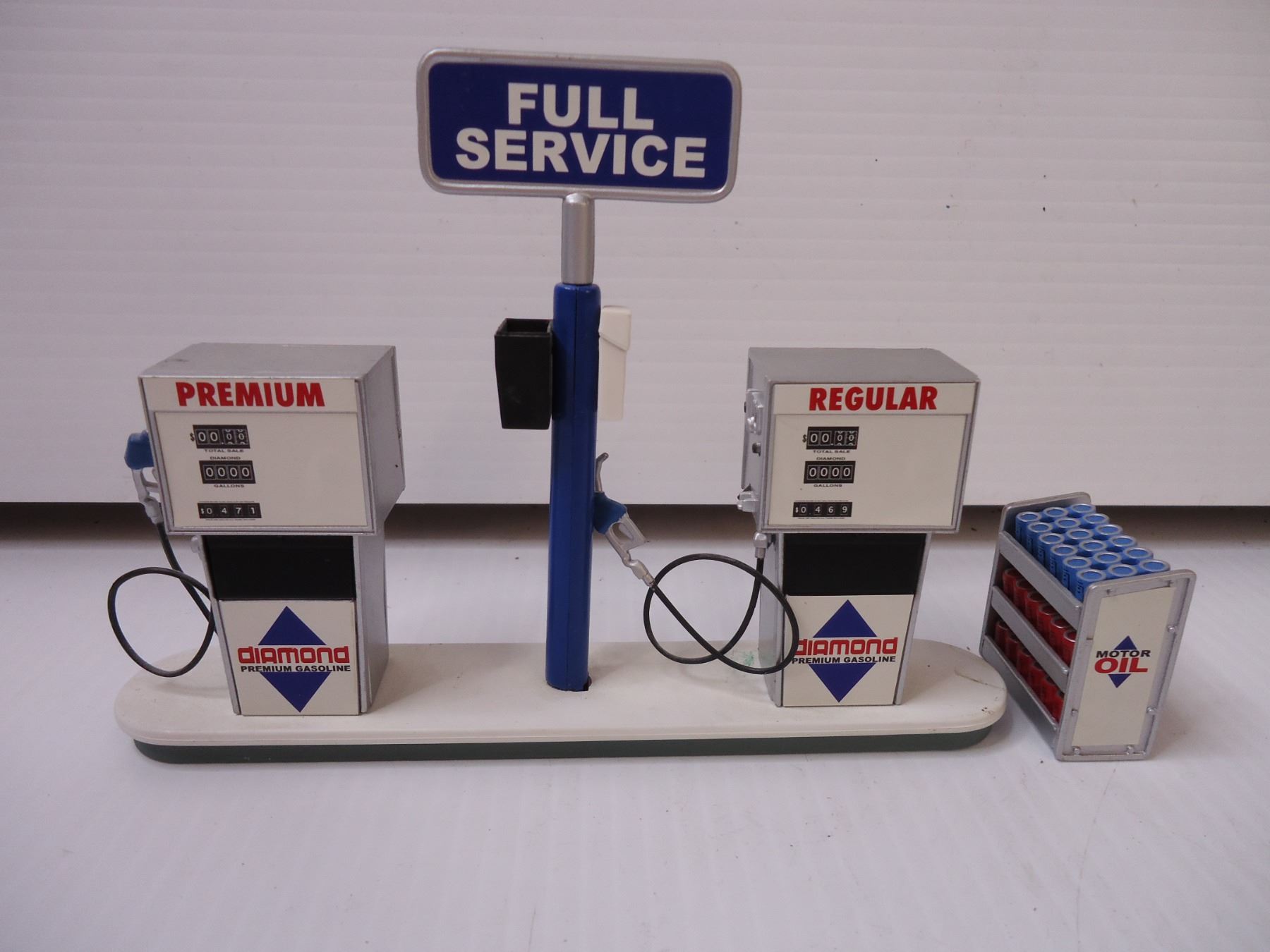 (2) Pieces of Gas Station Accessories-Pumps and Oil Can Displayer