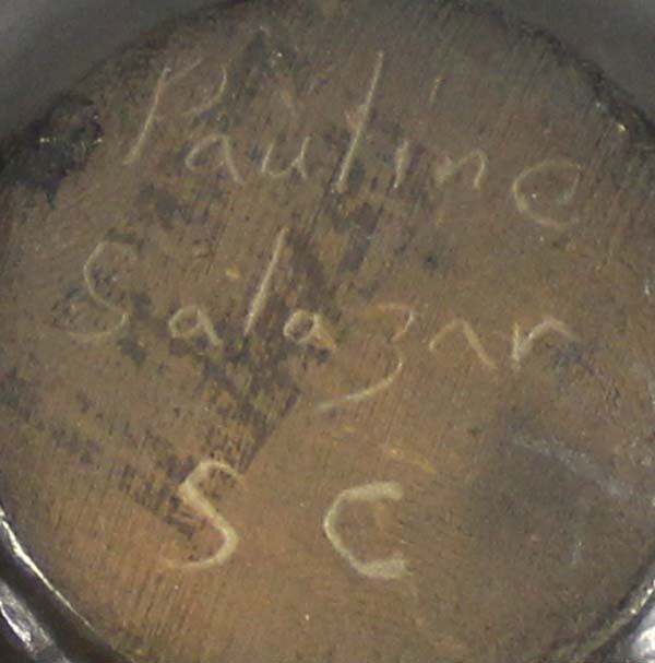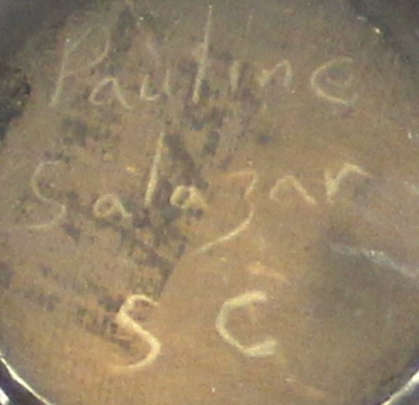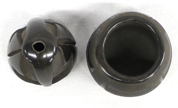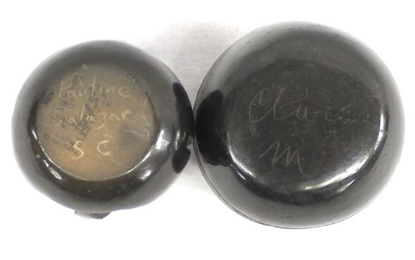 2 Pieces of Historic Native American Pottery, includes 1. San Ildefonso Matte on Black Pottery Bowl, measures 2'' x 2.25'', signed Clara M. for either Clara Montoya (1909-1997 and sister to Maria Martinez) or Clara Martinez (b. early 1900s) wife of Maria Martinez' son 2. Santa Clara Carved Pottery Seed Jar by Pauline Salazar, measures 2'' x 2'' and is signed on the bottom, deeply carved designs