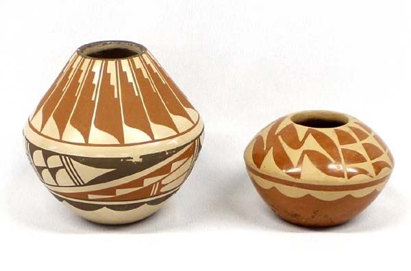 2 Pieces of Native American Jemez Pottery, includes 1. Vintage Seed Jar by C. Loretto (Cecilia Loretto?), signed on the bottom 2. Vintage Polychrome Jar, unreadable signature on the bottom, beautiful vintage pieces