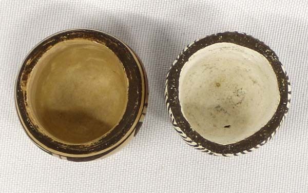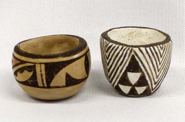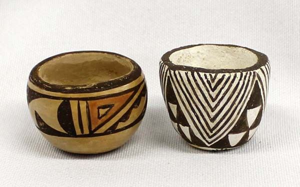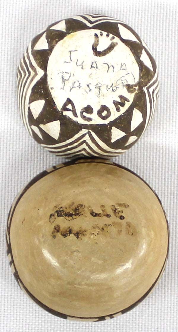2 Pieces of Native American Pottery Miniatures, includes 1. Hopi Miniature Pottery Bowl by Adelle Lalo Nampeyo (b. 1959), measures 1.25'' x 7/8'' and is signed on the bottom 2. Acoma Pottery Jar by Juana Pasqual, measures 1'' x 1'' and is signed on the bottom in pencil