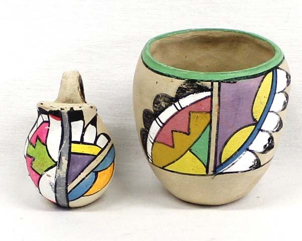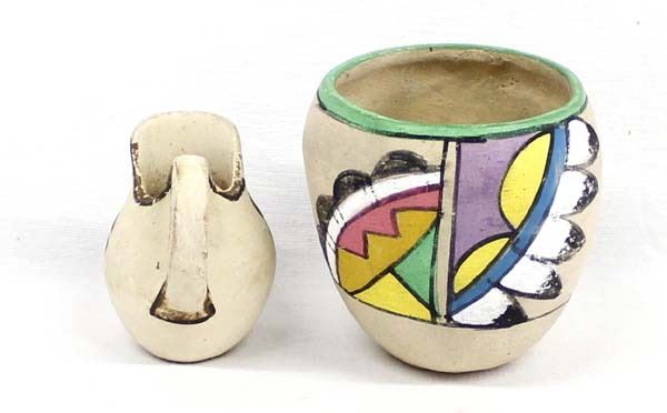 2 Pieces of Native American Tesuque Pottery, largest measures 5''H, includes small pitcher and bowl